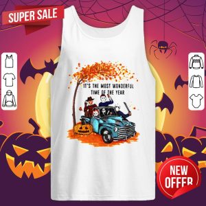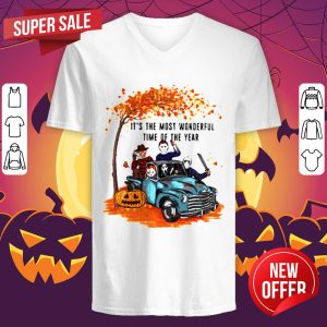 Halloween Horror Characters Riding Car Its The Most Wonderful Time Of The Year Leaves Tree Shirt