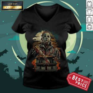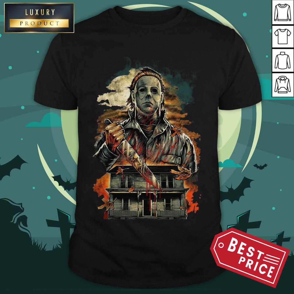 Halloween Michael Myers Holding Knife Fire Shirt