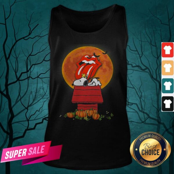 Halloween Snoopy And Woodstock Poster The Rolling Stones Pumpkin Moon Shirt