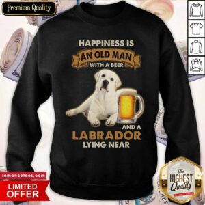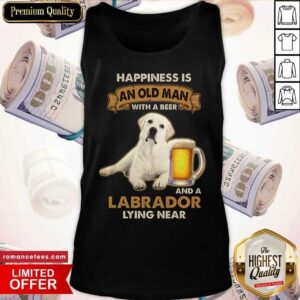Happiness Is An Old Man With A Beer And A Labrador Lying Near Shirt