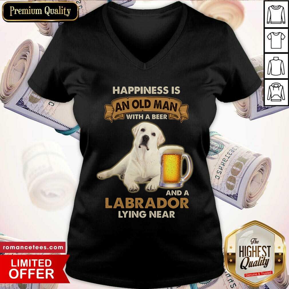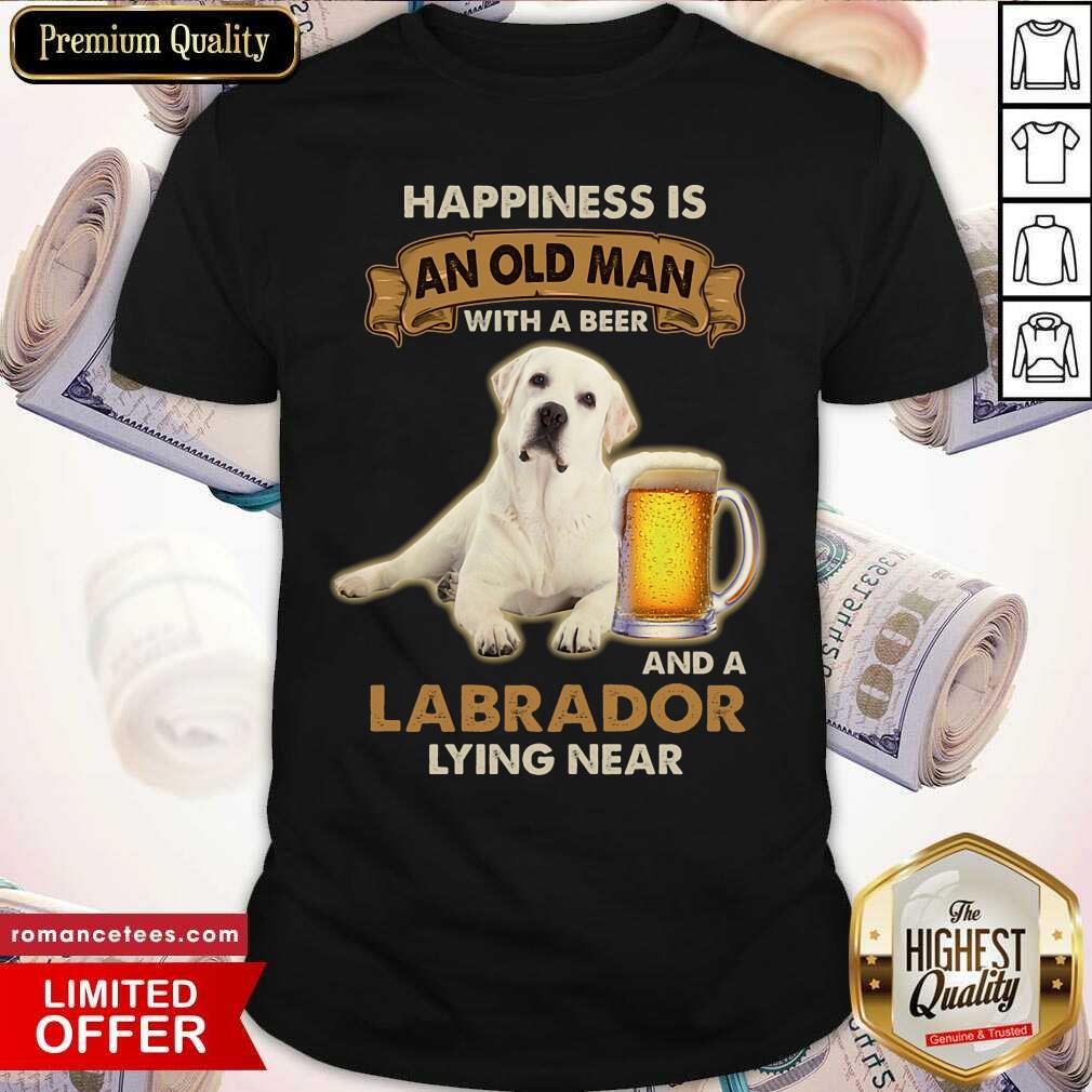 Happiness Is An Old Man With A Beer And A Labrador Lying Near Shirt