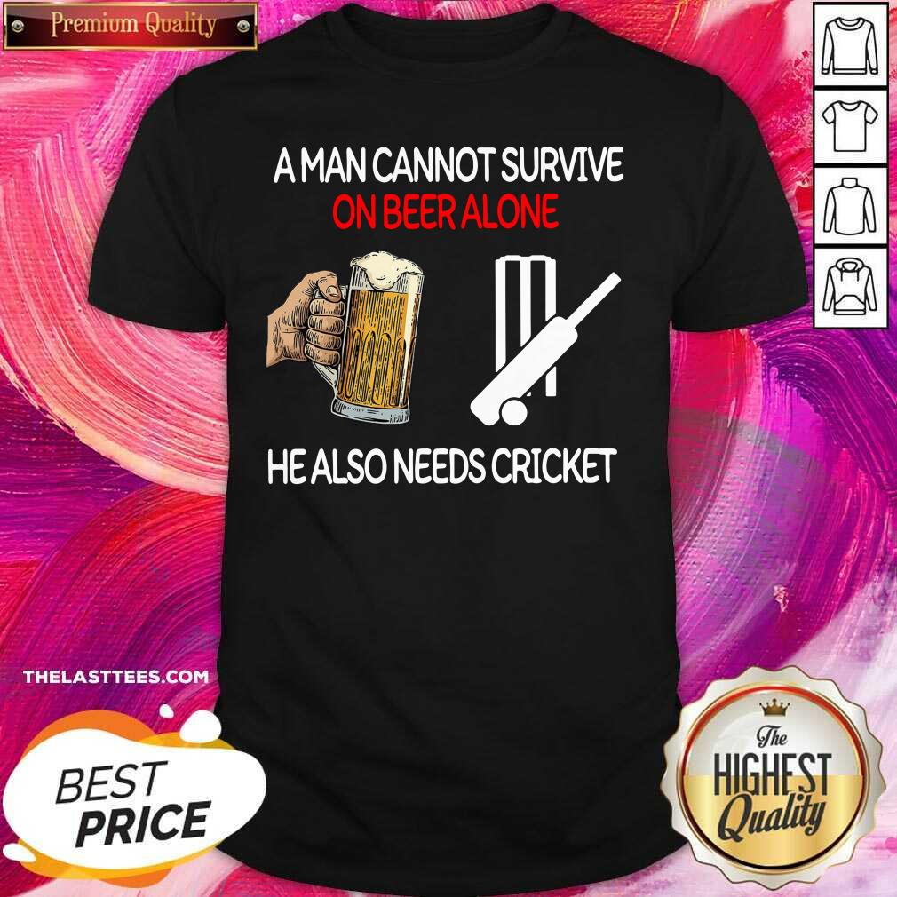 Happy A Man Cannot Survive On Beer Alone He Also Needs Cricket Shirt