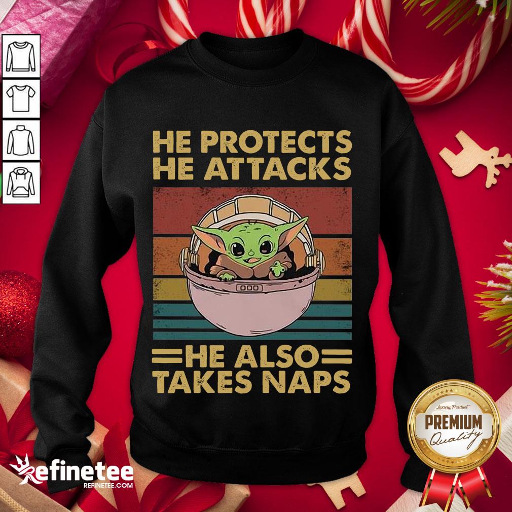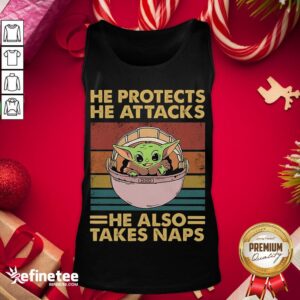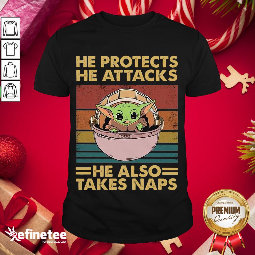 Happy Baby Yoda He Protects He Attacks He Also Takes Naps Vintage Shirt