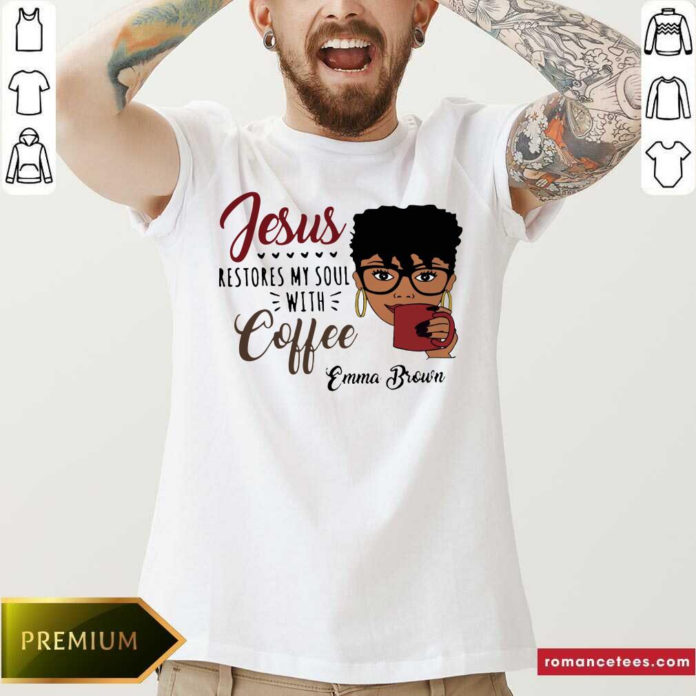 Happy Black Woman Jesus Restores My Soul With Coffee Emma Brown Shirt