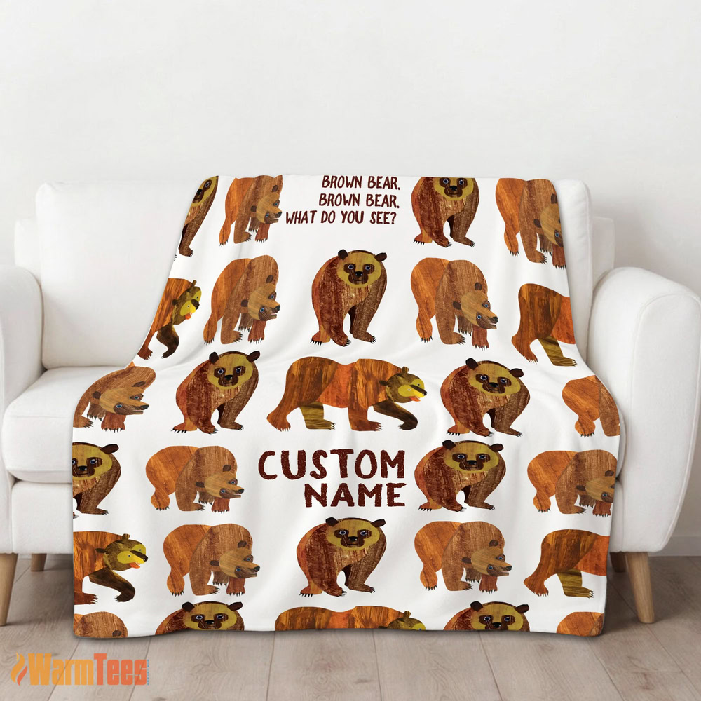 Happy Brown Bear Brown Bear Blanket Fleece Customized Blanket