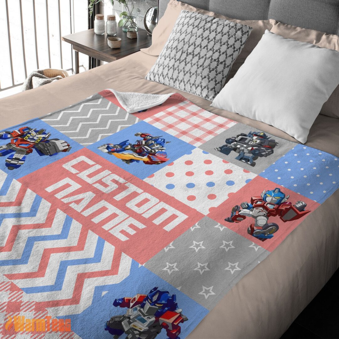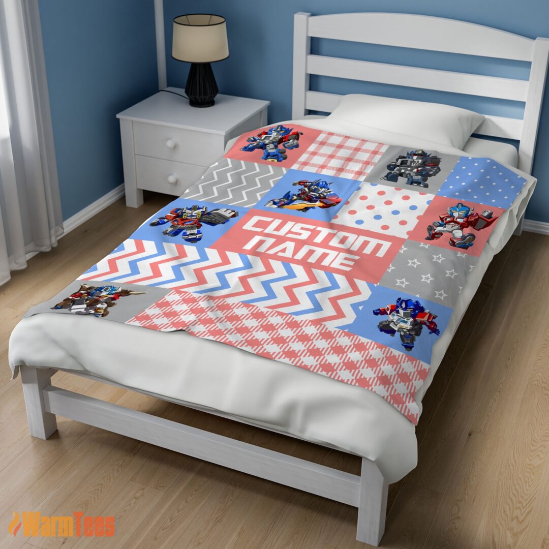 Happy Chibi Optimus Prime Transformers Pattern Blanket Fleece Customized Blanket