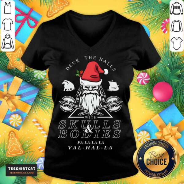 Happy Deck The Halls With Skulls And Bodies Falalala Valhalla Funny Vikings Christmas Gift Deck The Halls T-Shirt