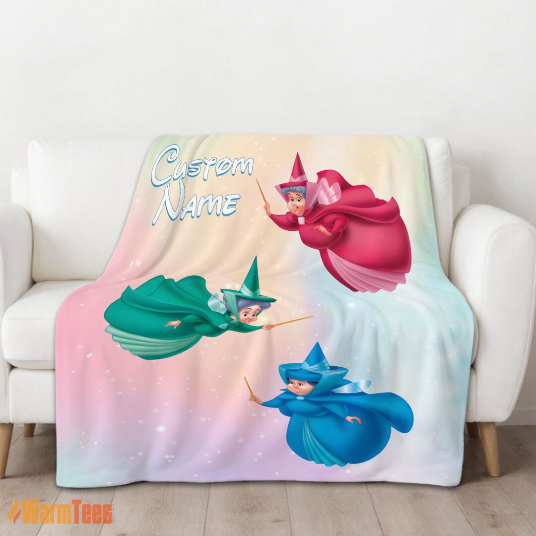 Happy Disney Sleeping Beauty Three Good Fairies Blanket Fleece Customized Blanket