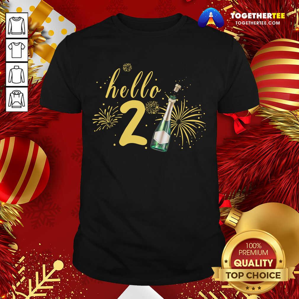 Happy Hello 2021 Champagne Bottle Fireworks New Years Party Shirt