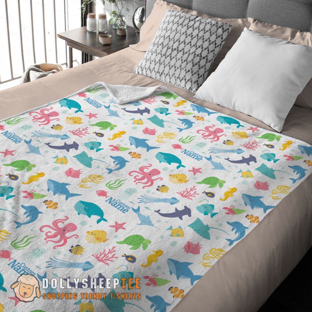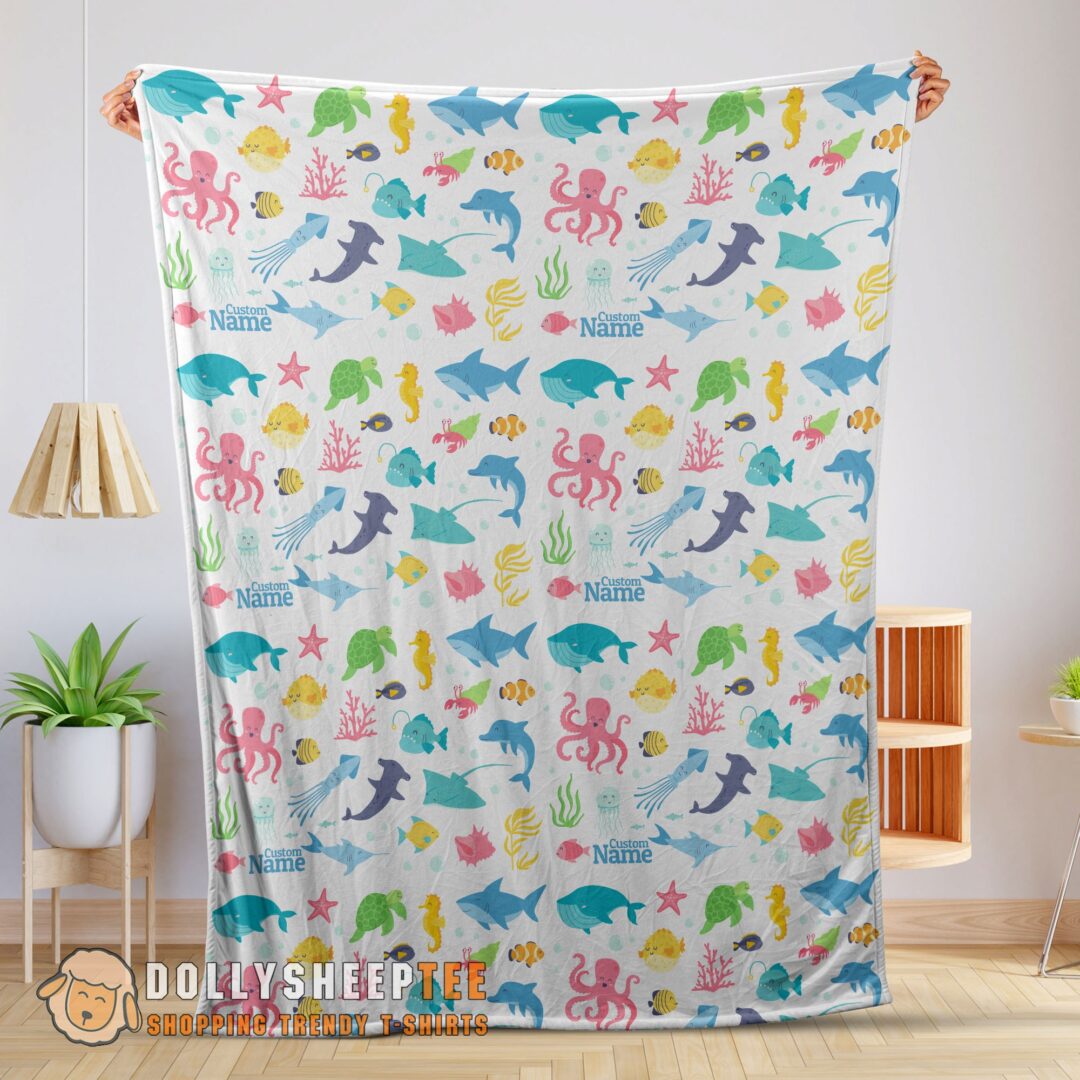 Happy Hot Under The Sea Pattern Blanket Fleece Customized Blanket