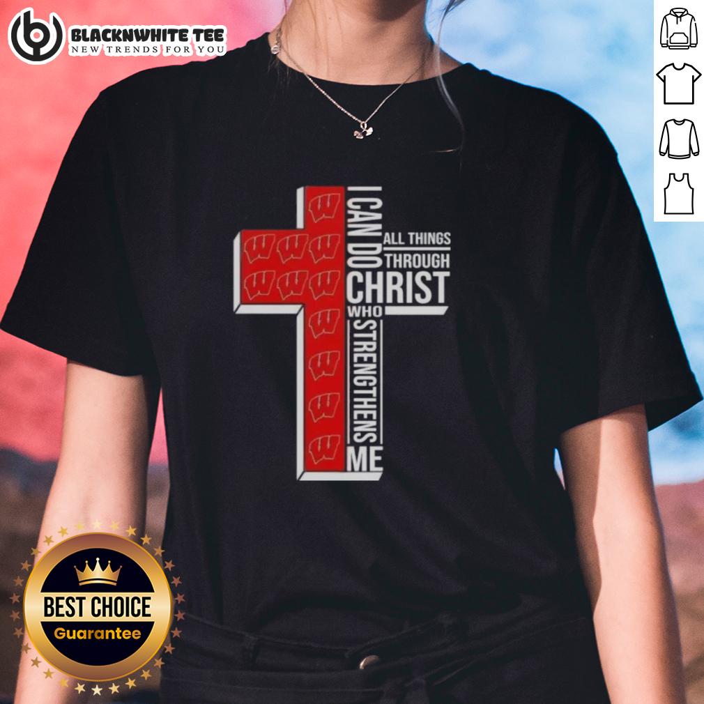 Happy I Can Do All Things Through Christ Who Strengthens Me Wisconsin Badgers Football Cross T-Shirt