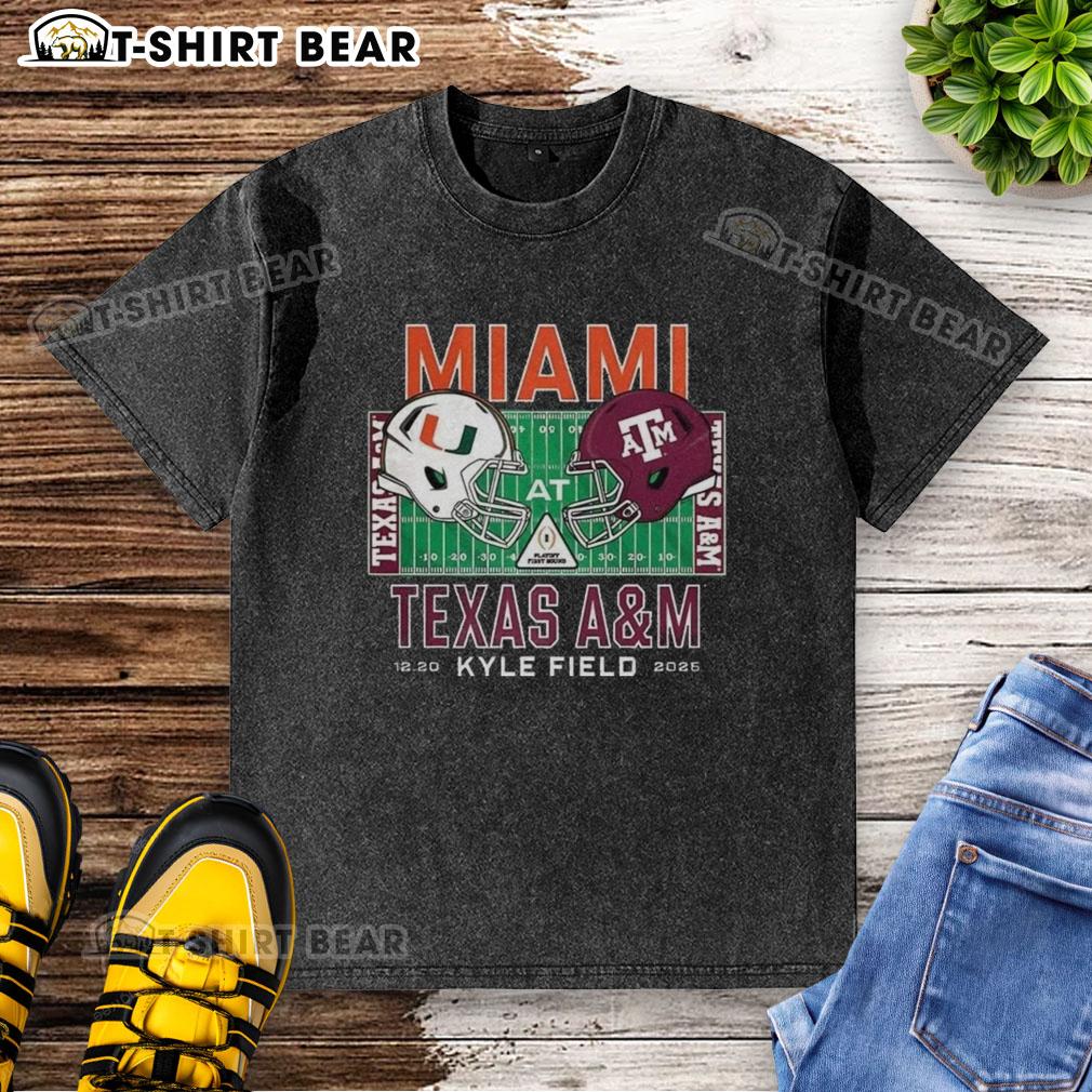 Happy Miami Hurricanes Vs Texas A&M Aggies NCAA Kyle Field 2025 Helmet T-Shirt