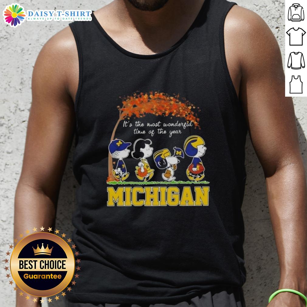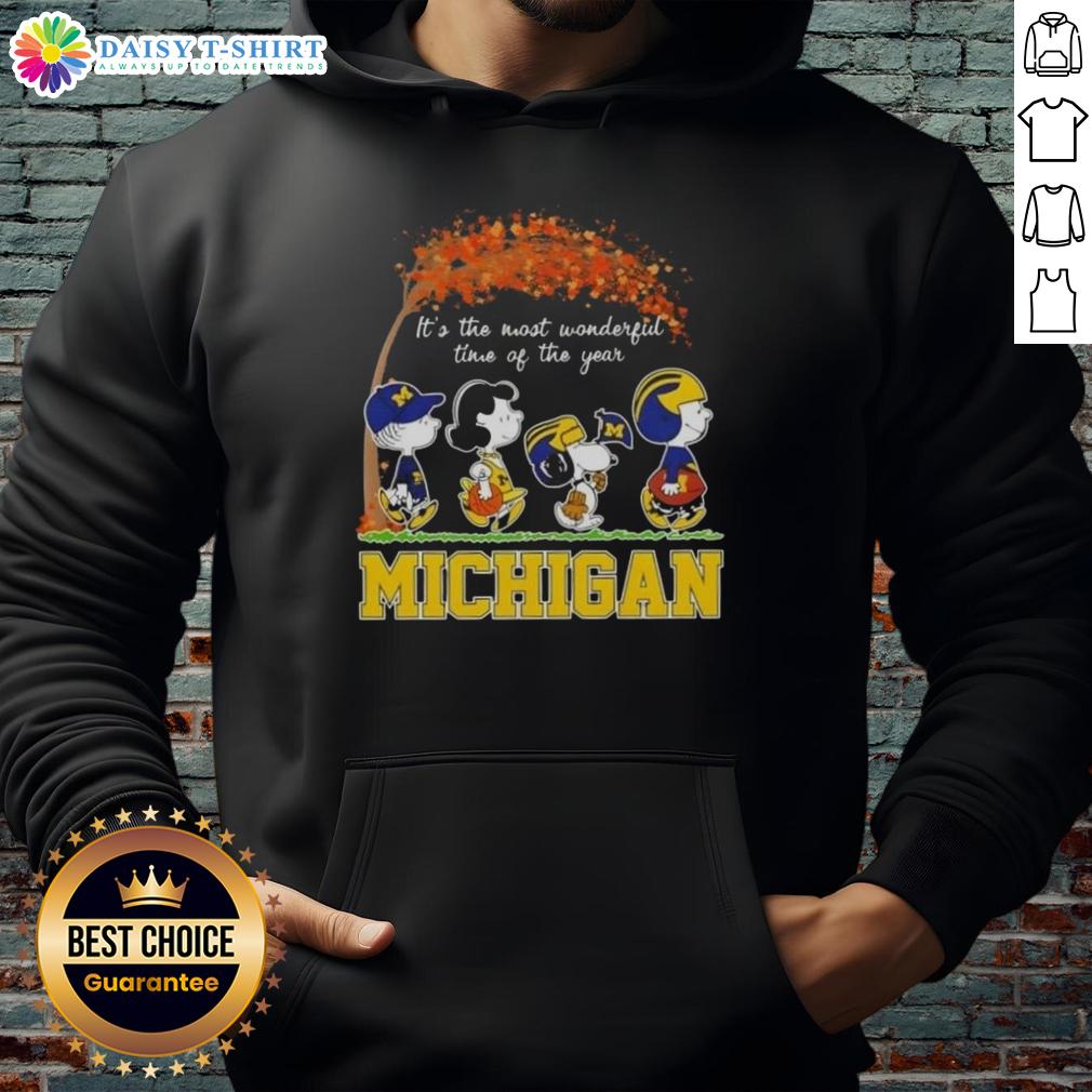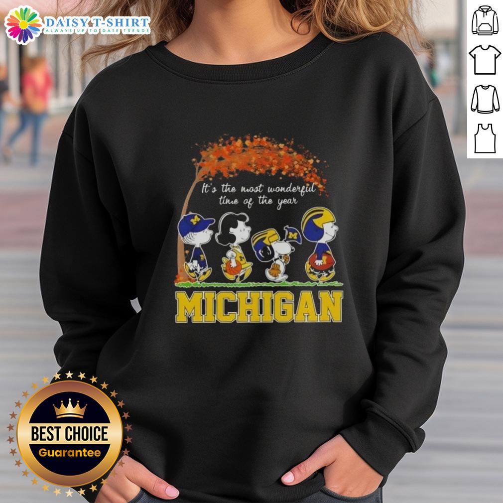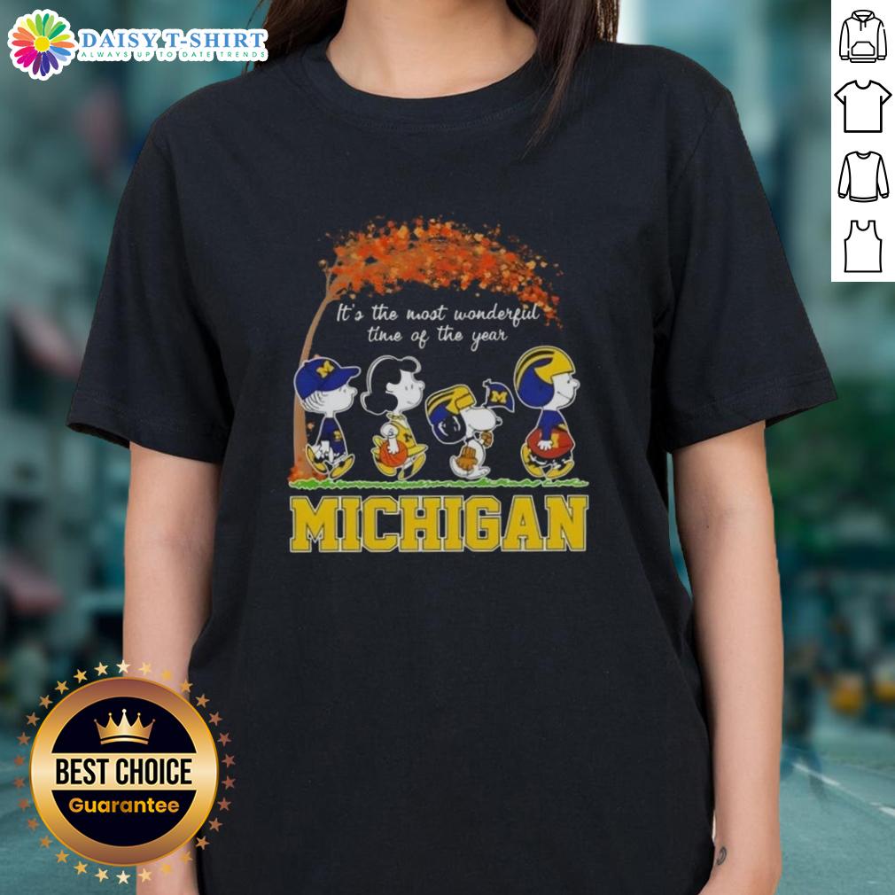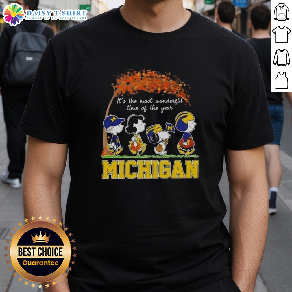 Happy Michigan Wolverines X Peanuts Snoopy And Friends Autumn It’s The Most Wonderful Time Of The Year T-Shirt