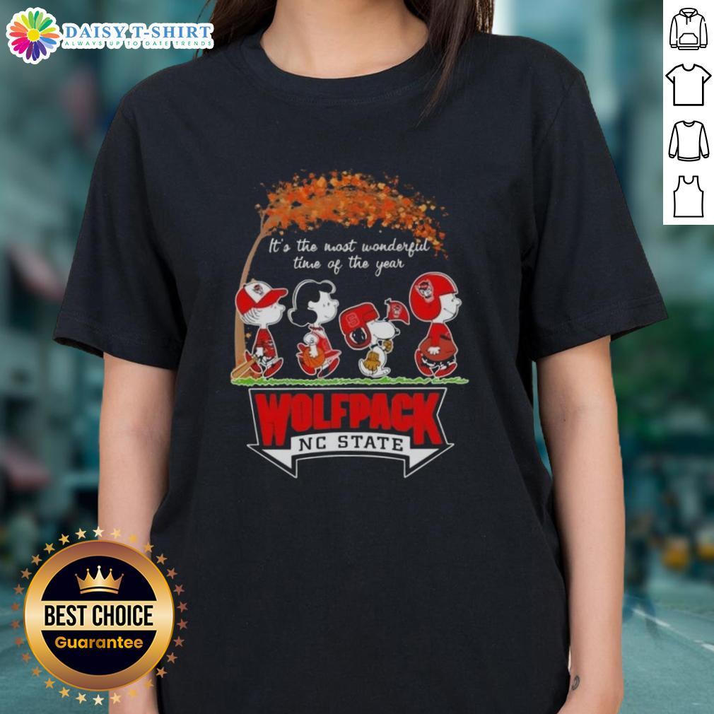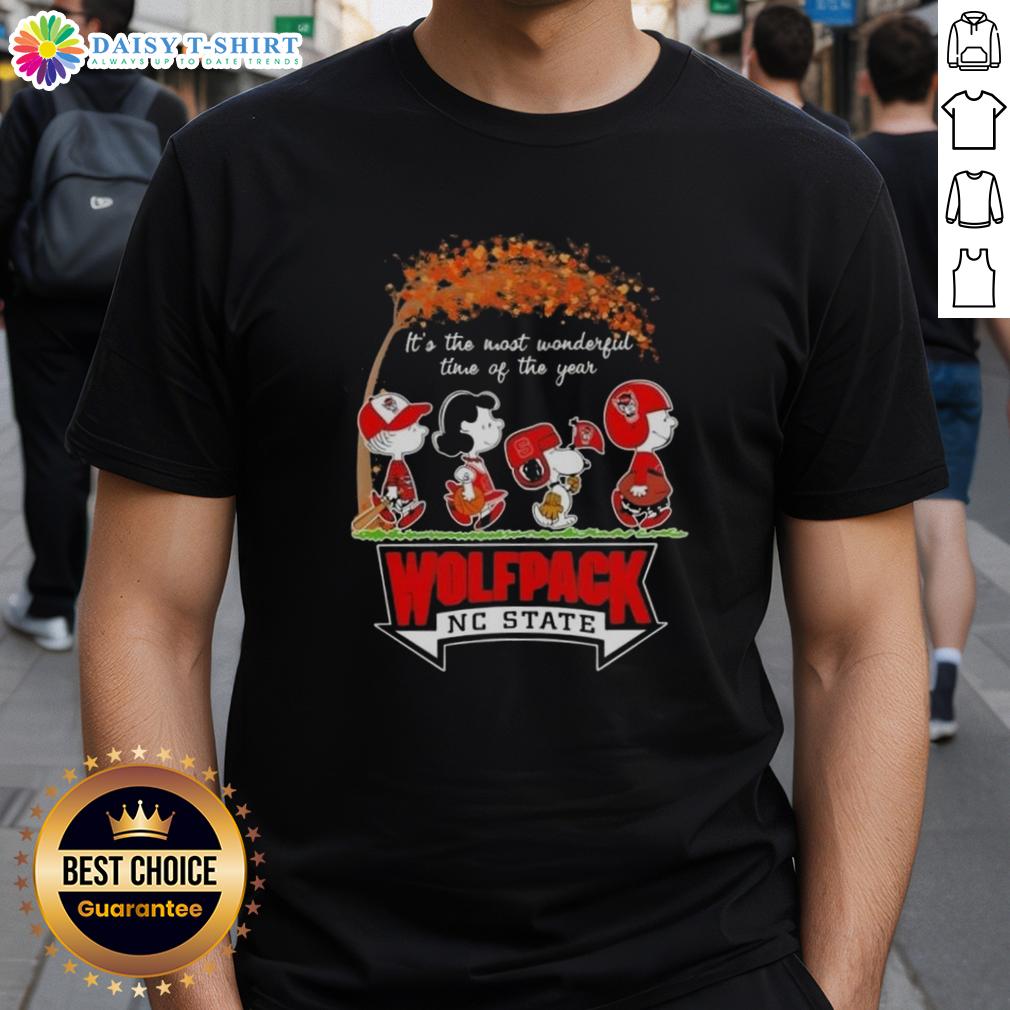 Happy NC State Wolfpack X Peanuts Snoopy And Friends Autumn It’s The Most Wonderful Time Of The Year T-Shirt