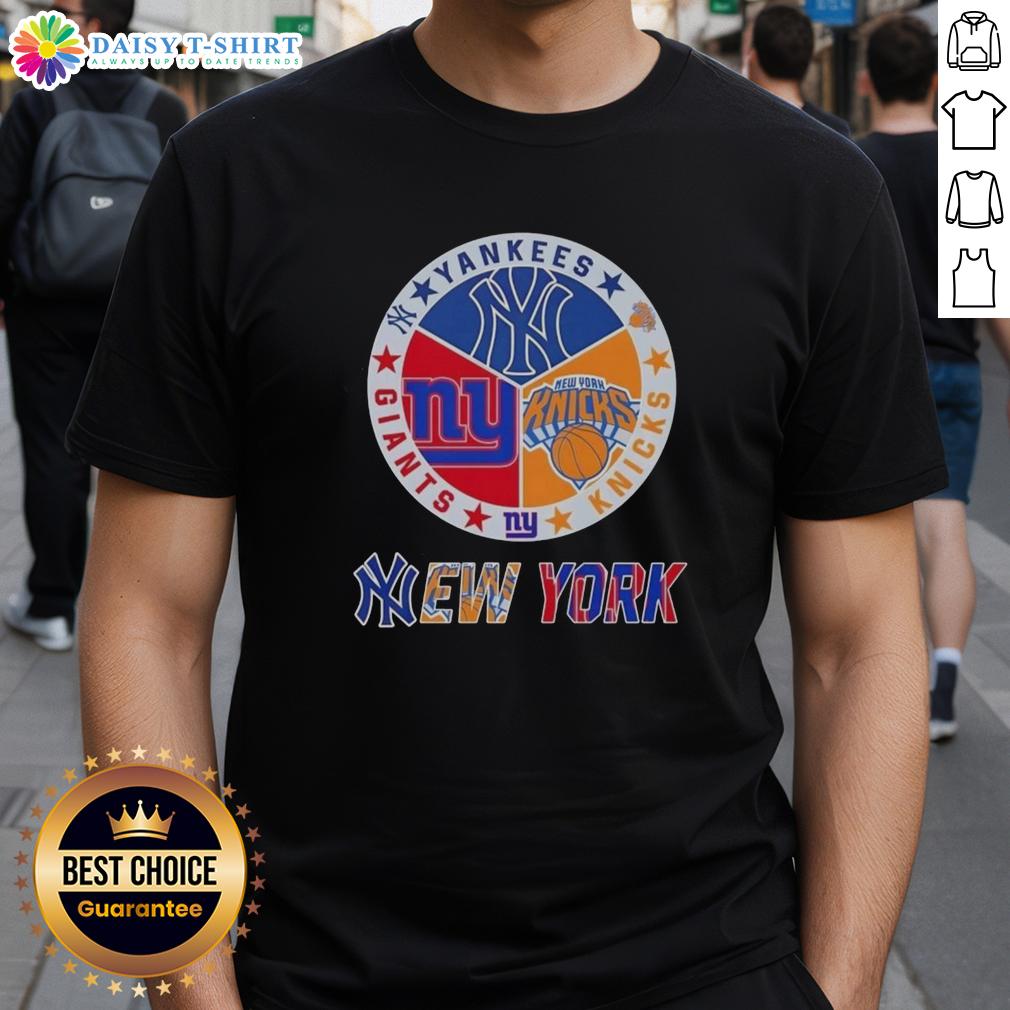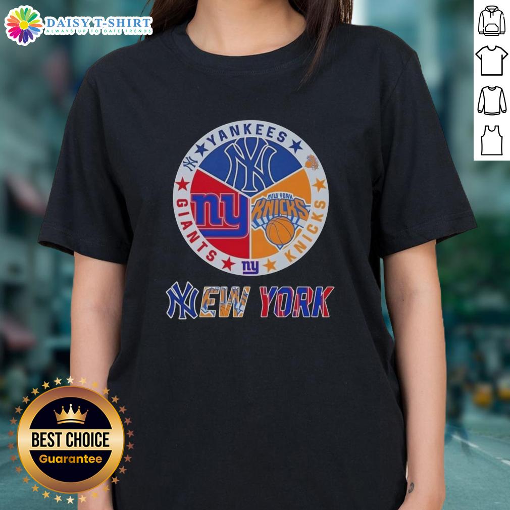 Happy New York City Sports Yankees Knicks Giants Logos Combine T-Shirt