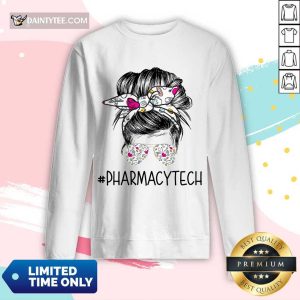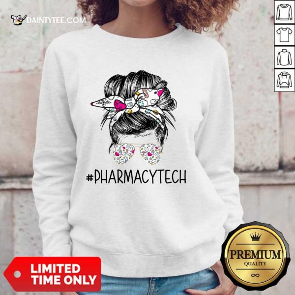 Happy Pharmacy Tech Girl Bun Hair Glasses Shirt