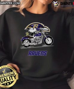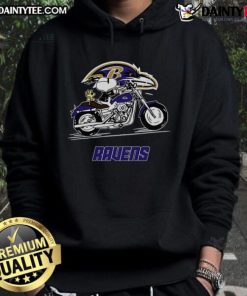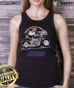Happy Snoopy And Woodstock Driving Motorbike Baltimore Ravens T-Shirt