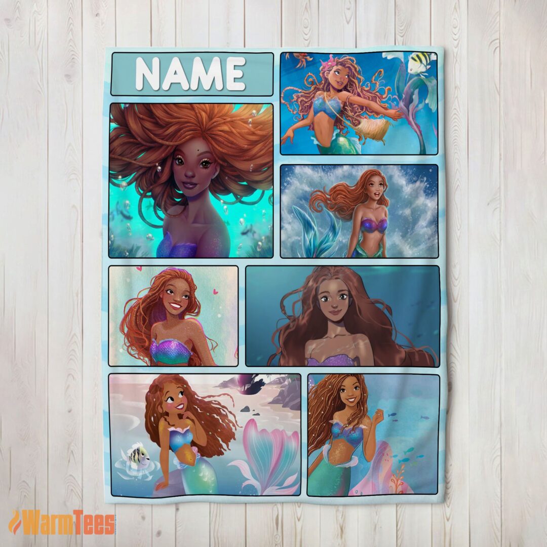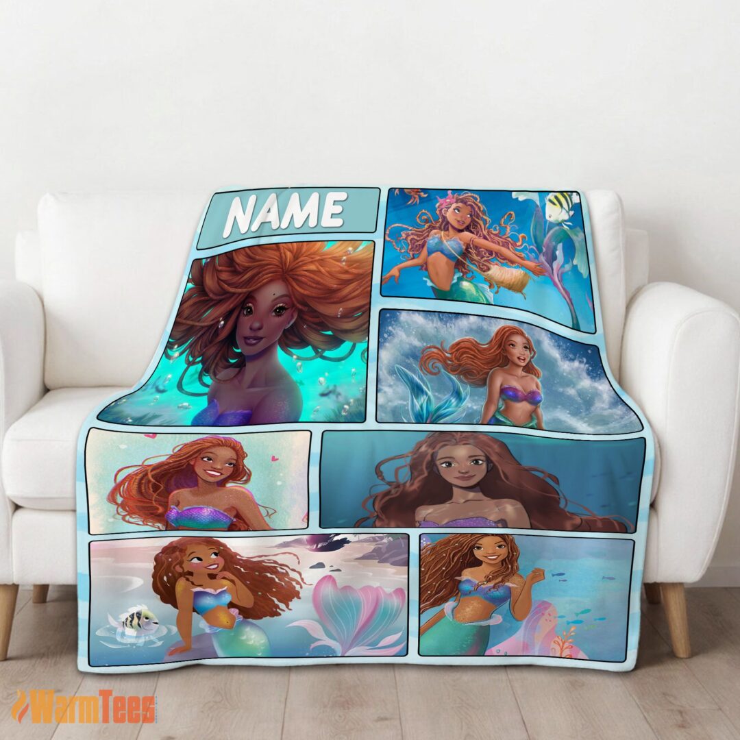 Happy The Little Mermaid Ariel Blanket Fleece Customized Blanket