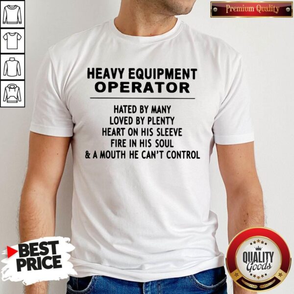 Heavy Equipment Operator Hated By Many Loved By Plenty Heart On His Sleeve Fire In His Soul A Mouth He Can’t Control Shirt
