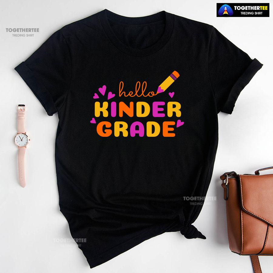 Hello Kinder Grade Kindergarten Student Crayon Purple Heart Back To School T-Shirt
