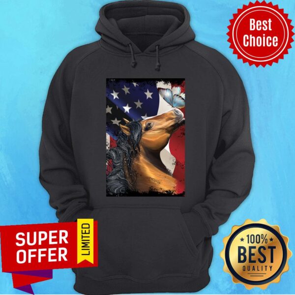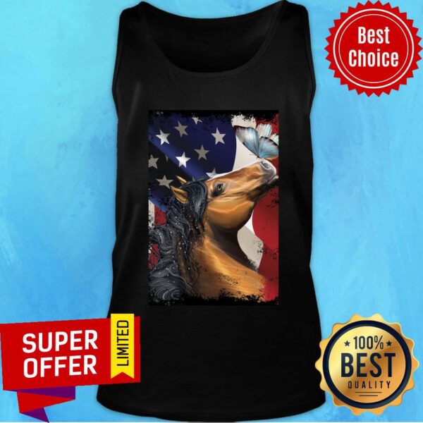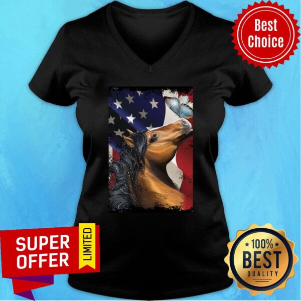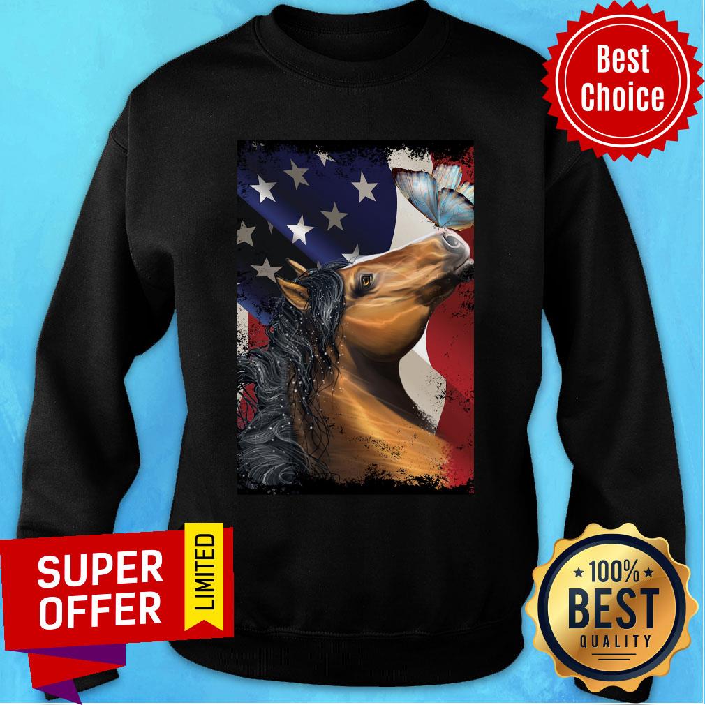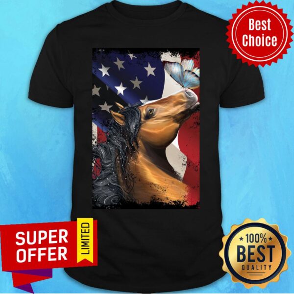 Horse Butterfly On Nose Horse Lovers American Flag Shirt