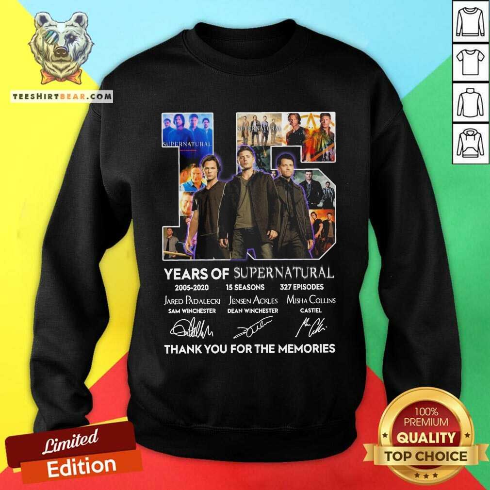 Hot 15 Years Supernatural 15 Seasons 327 Episodes Thank You For The Memories Signatures Shirt