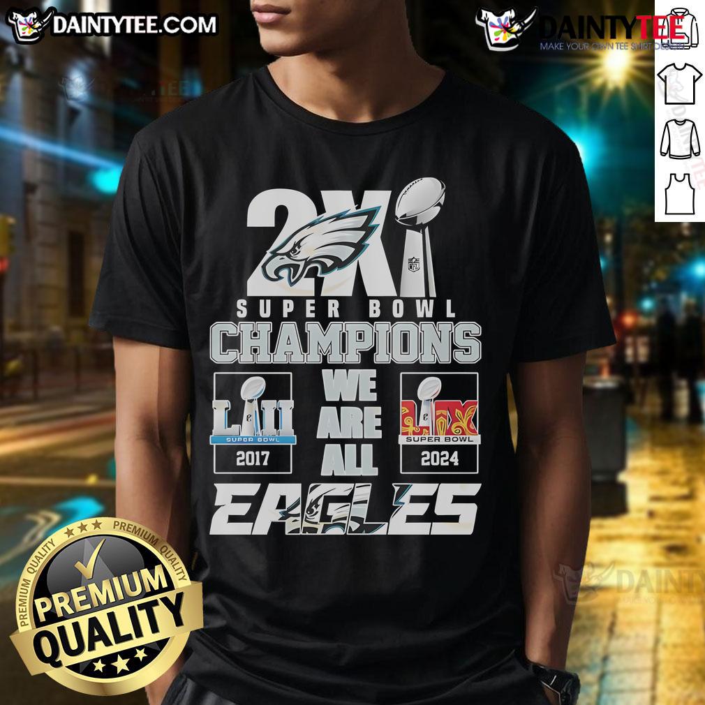 Hot 2X Philadelphia Eagles Super Bowl LIX Champions We Are All Eagles T-Shirt