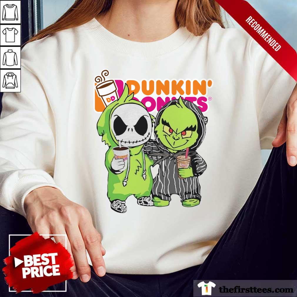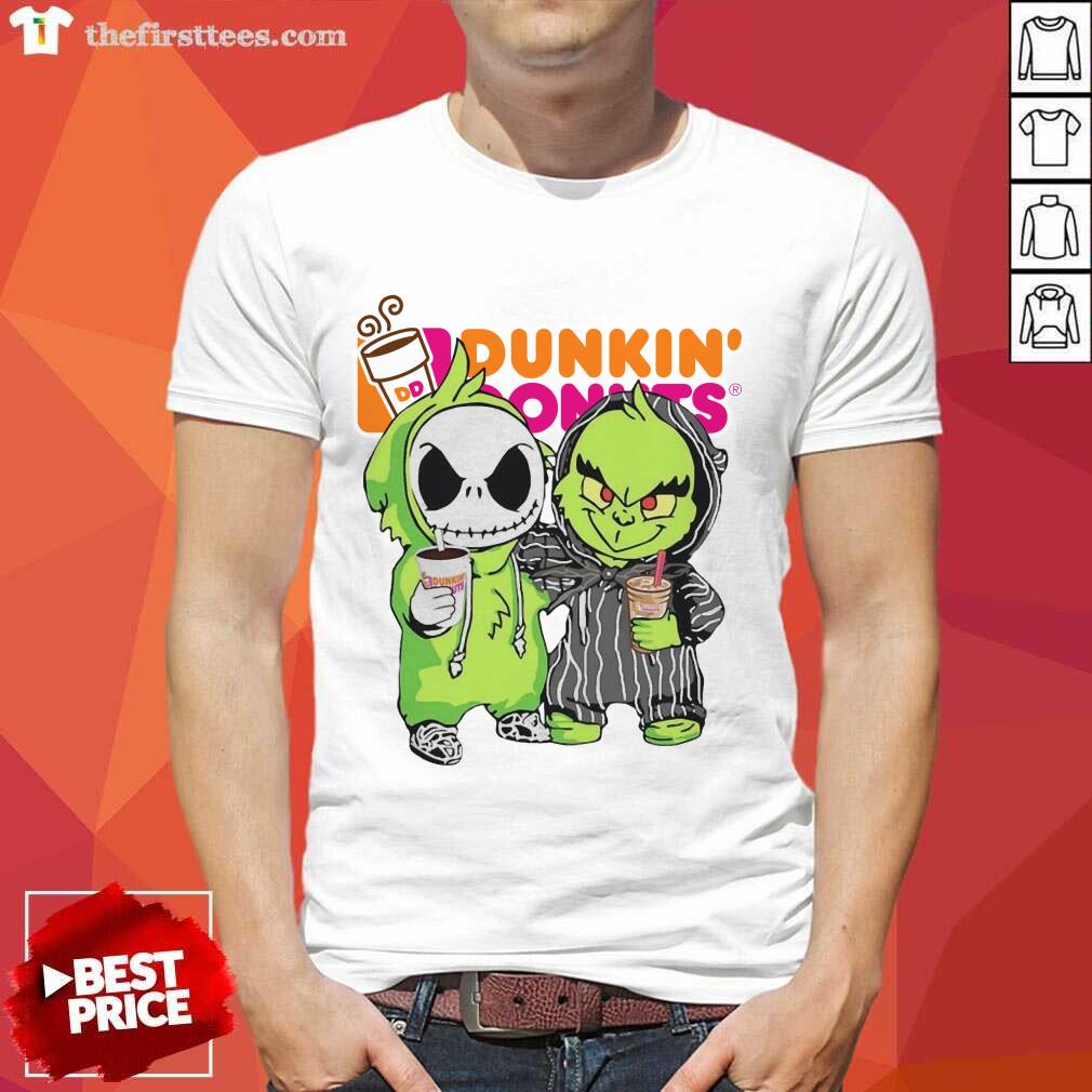 Hot Baby Jack Skellington And Grinch Love Dunkin’ Donuts Shirt