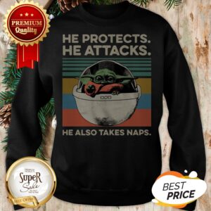 Hot Baby Yoda He Protects He Attacks He Also Takes Naps Vintage Shirt