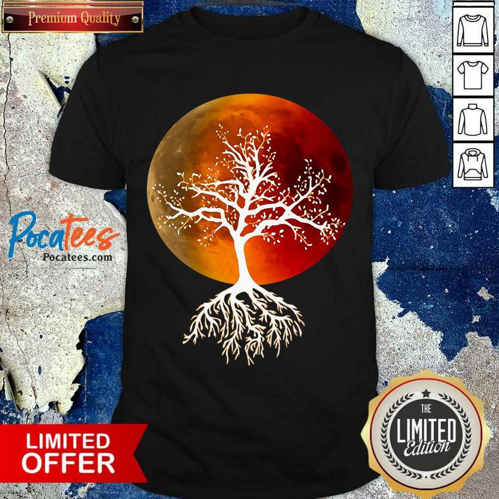 Hot Blood Moon With Tree Moon Lunar Eclipse Moonlight Full Moon Shirt