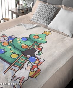 Hot Cute Mice & Penguin Cartoon Christmas Tree Blanket Fleece Customized Blanket