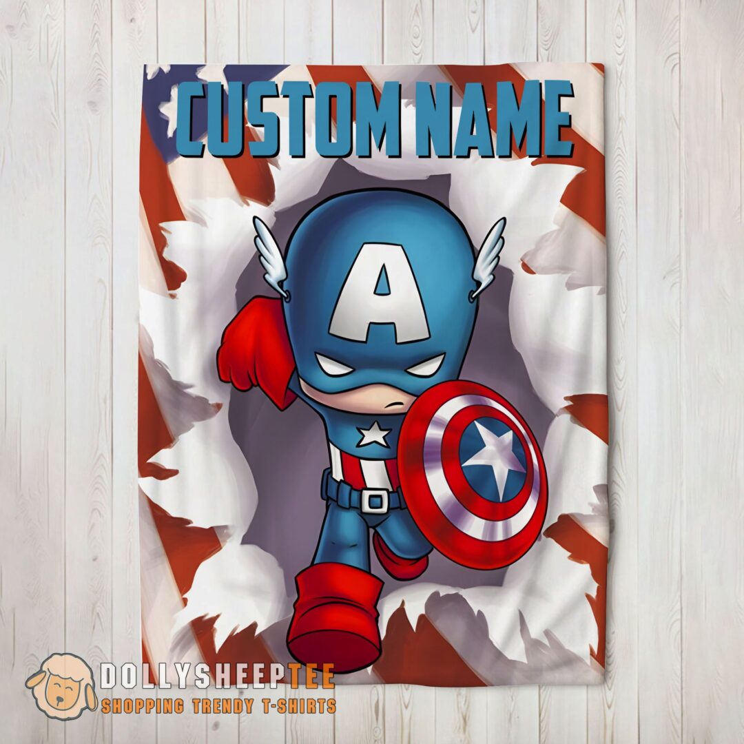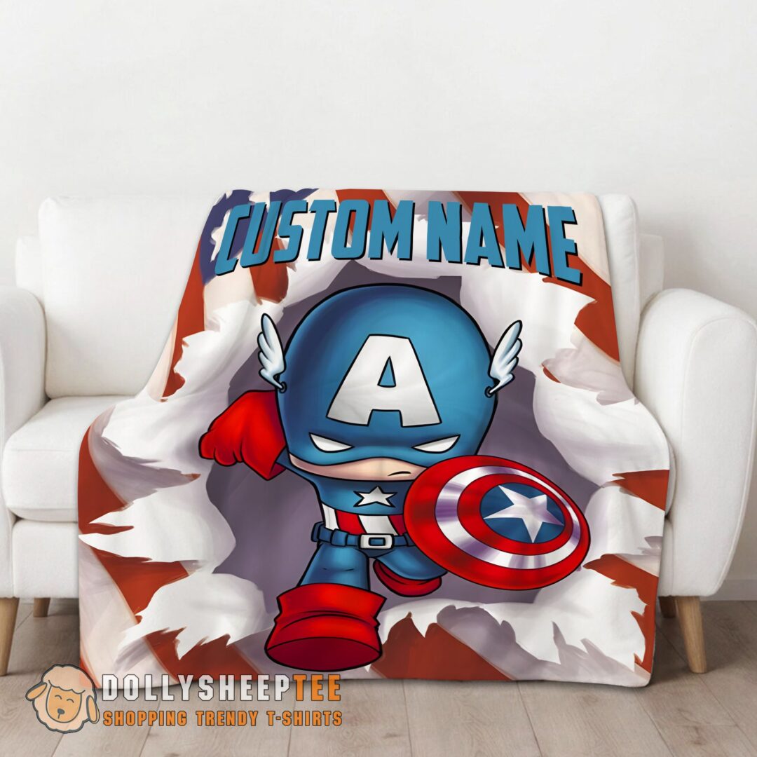 Hot Cute Official Superhero Marvel Avenger Chibi Captain America Blanket Fleece Customized Blanket