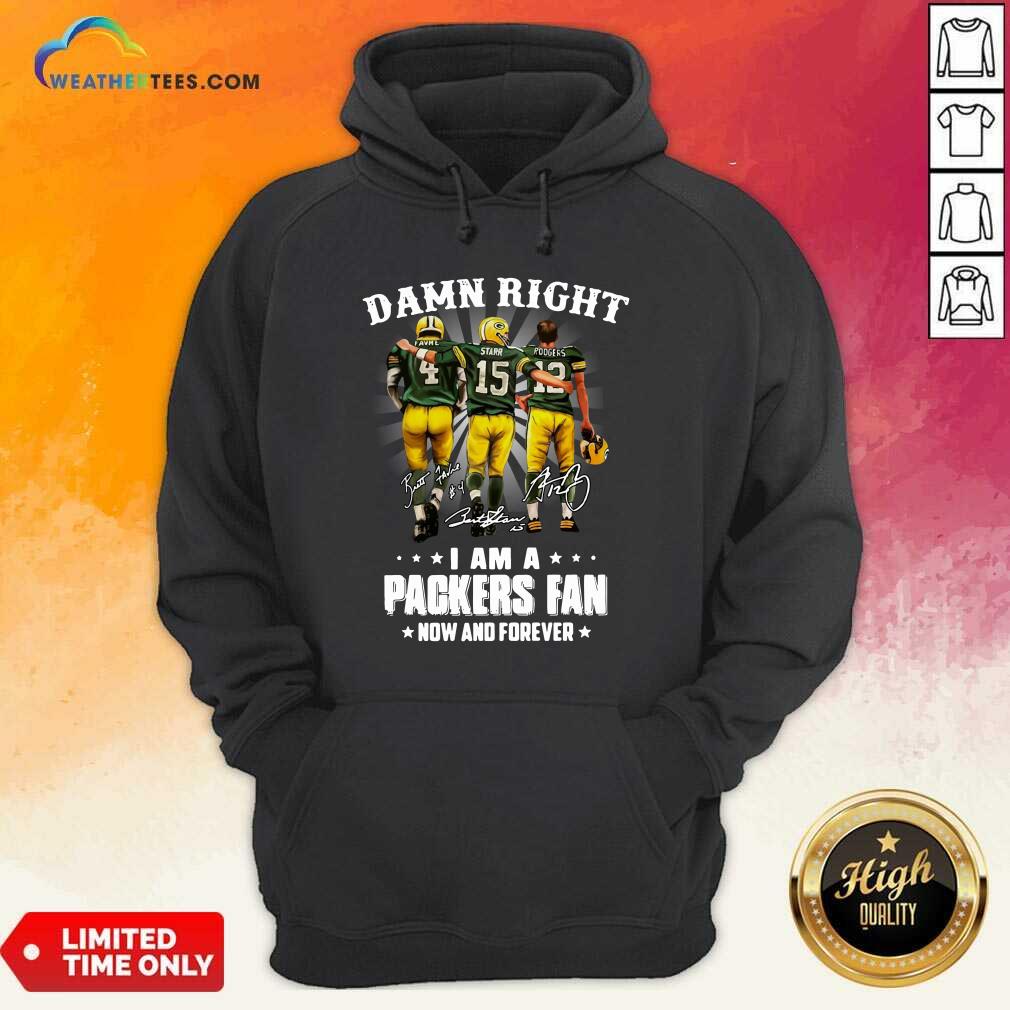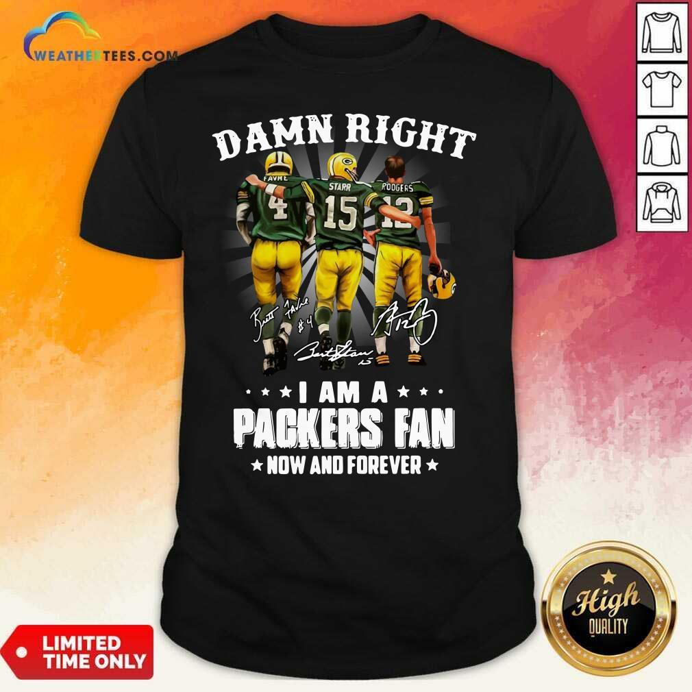 Hot Damn Right Favre Starr Rodgers I Am A Green Bay Packers Fan Now Snd Forever Signatures Shirt