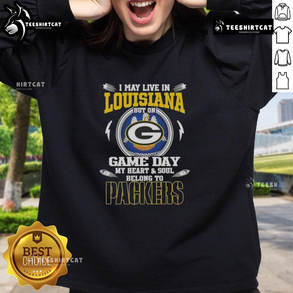 Hot I May Live In Louisiana But On Game Day My Heart And Soul Belongs To Green Bay Packers T-Shirt