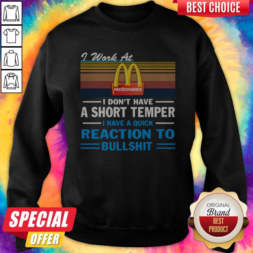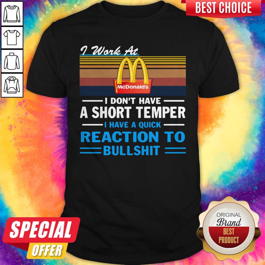 Hot I Work At Mcdonald’s I Don’t Have A Short Temper I Have A Quick Reaction To Bullshit Vintage Shirt