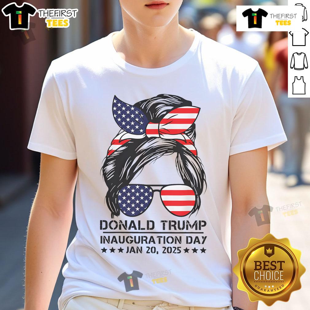 Hot Inauguration Day 2025 Funny Trump Girl Messy Bun T-Shirt