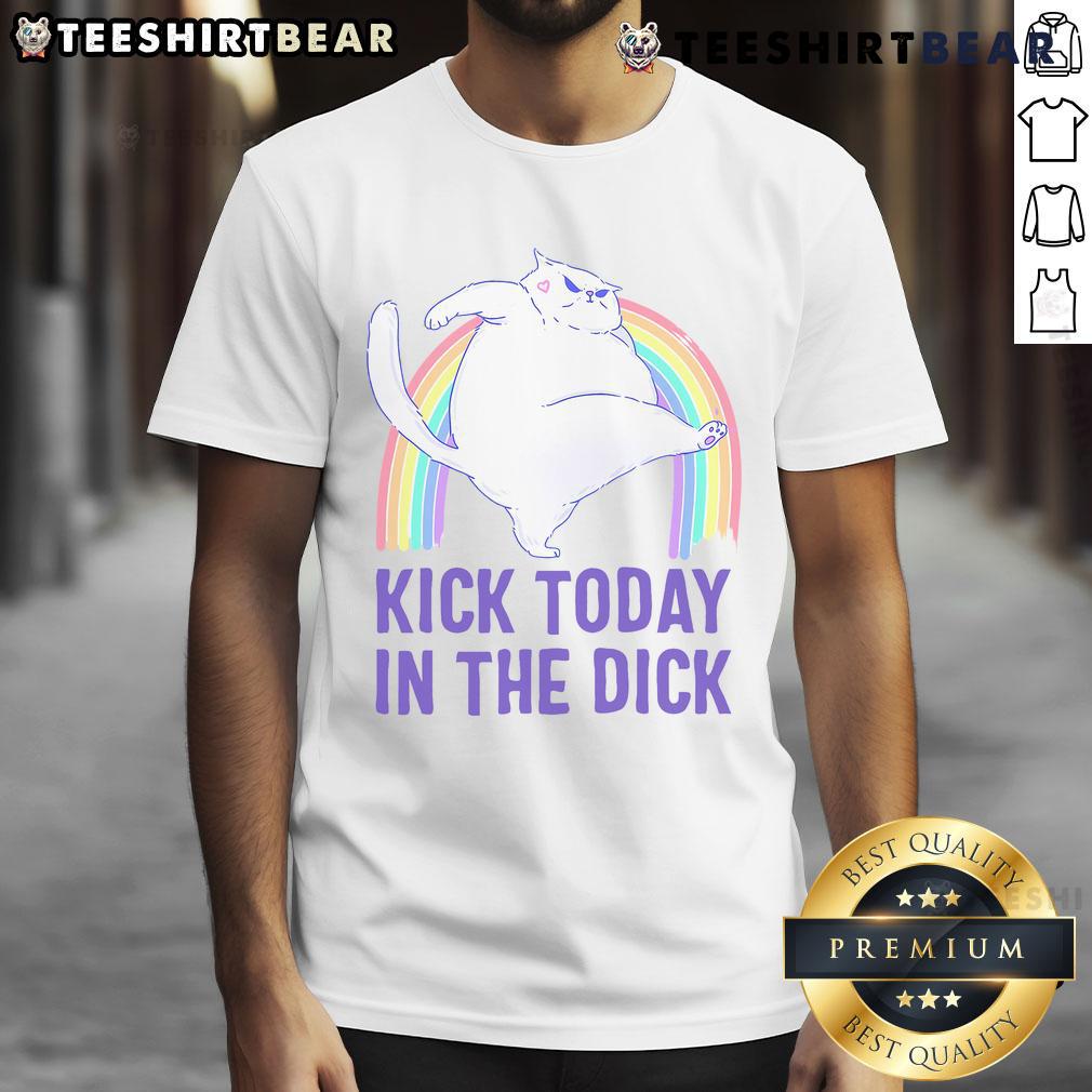 Hot Kick Today In The Dick White Cat Pastel Rainbow T-Shirt