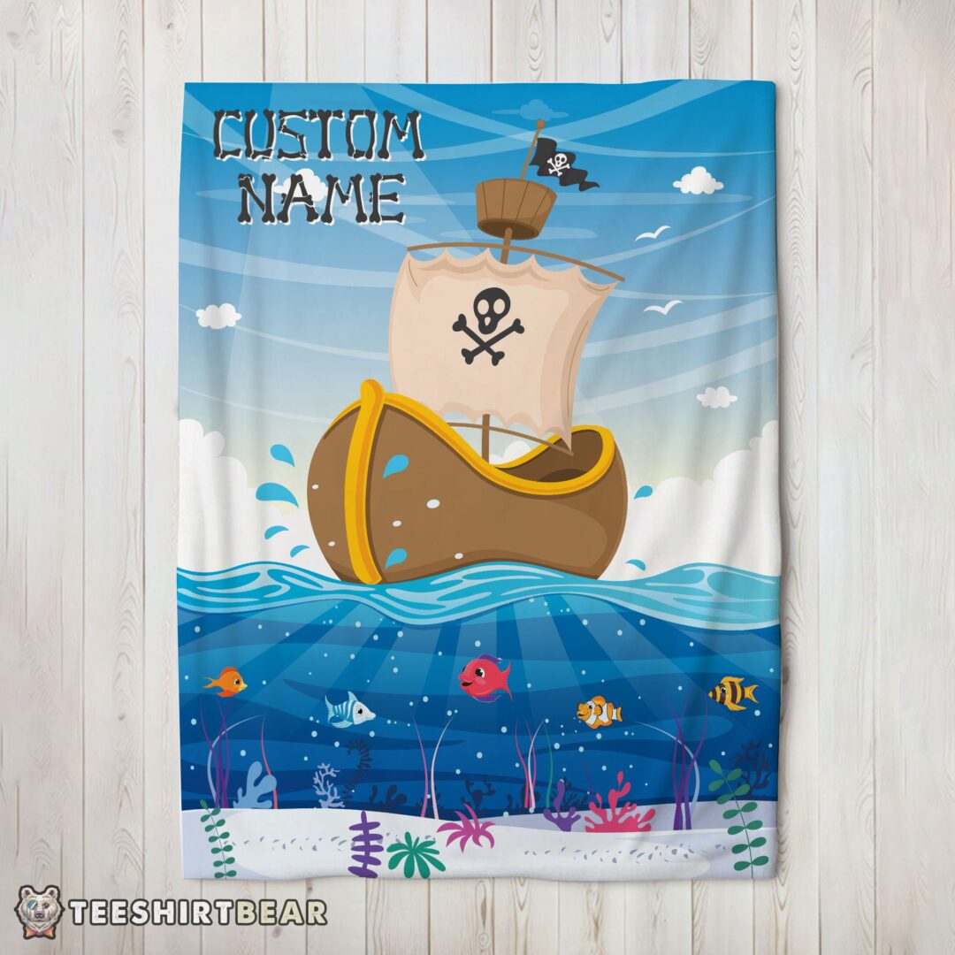 Hot Pirate Ship At Sea Fish Underwater Blanket Fleece Customized Blanket