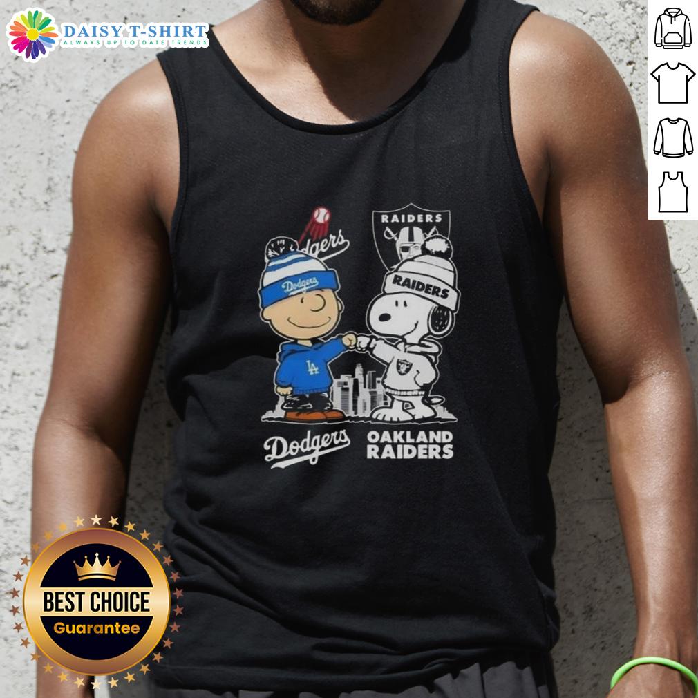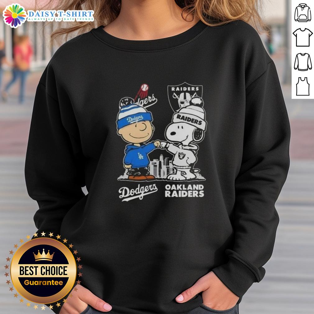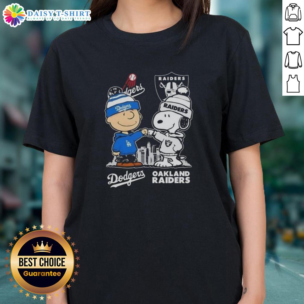 Hot Snoopy And Charlie Brown Los Angeles Dodgers X Las Vegas Raiders Skyline T-Shirt