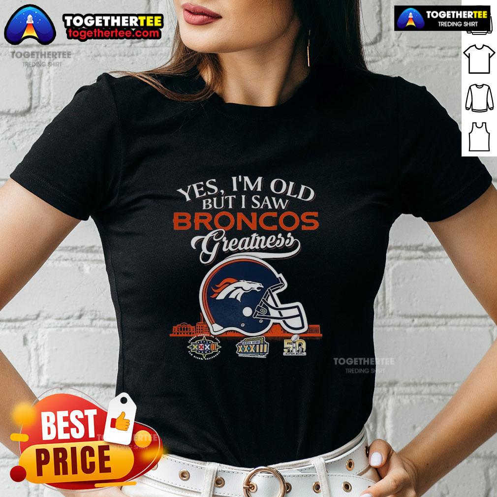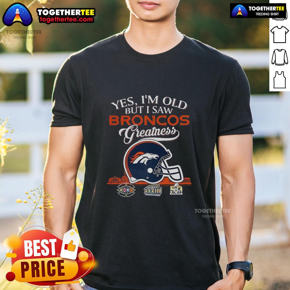 Hot Yes I’m Old But I Saw Denver Broncos Greatness Super Bowl Helmet Skyline T-Shirt