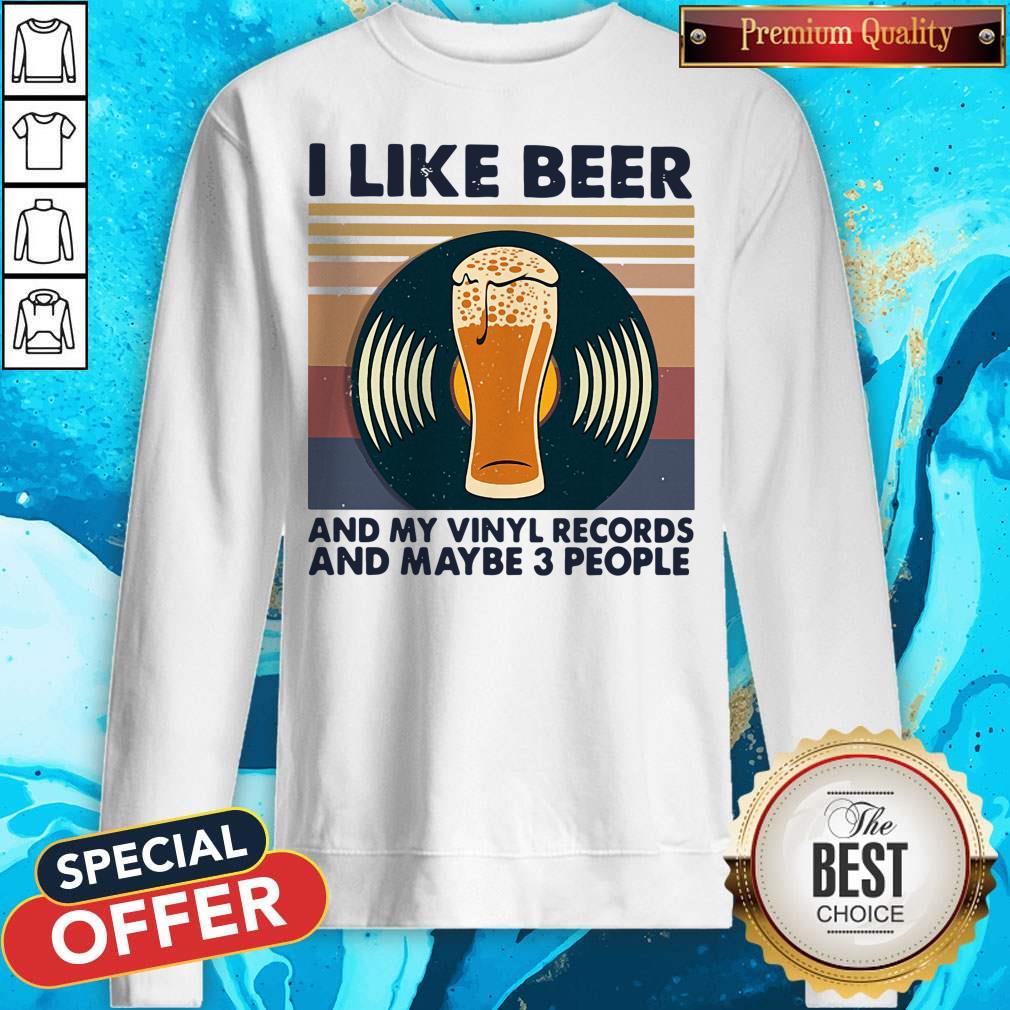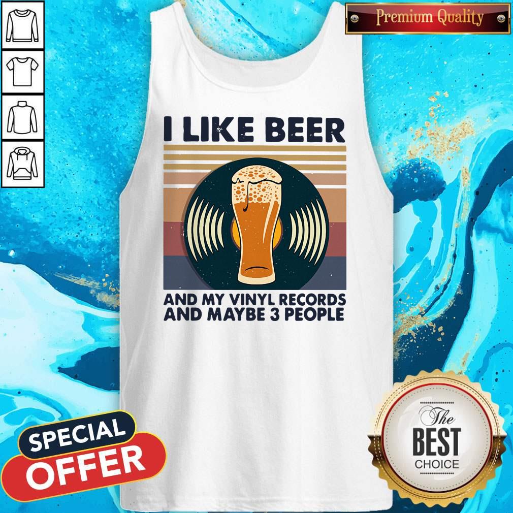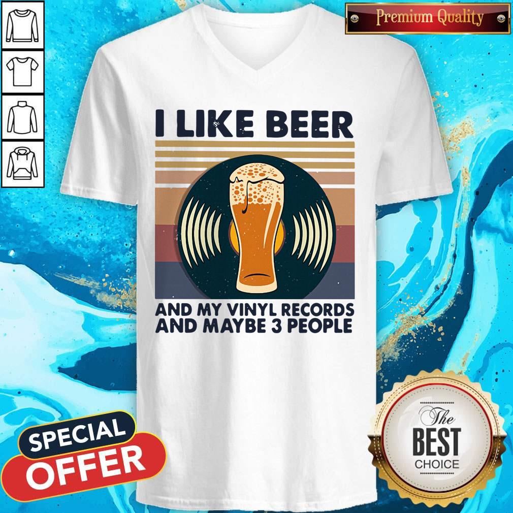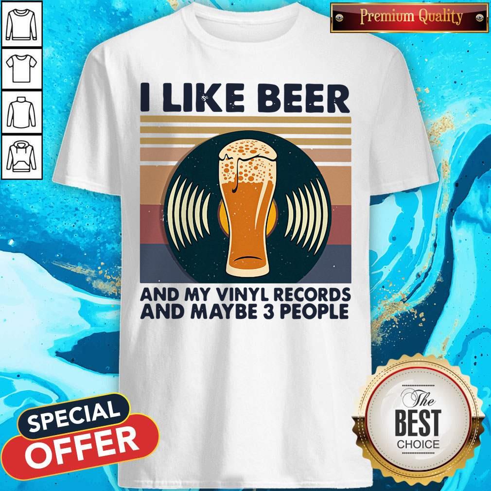 I Like Beer And My Vinyl Records And Maybe 3 People Vintage Retro Shirt