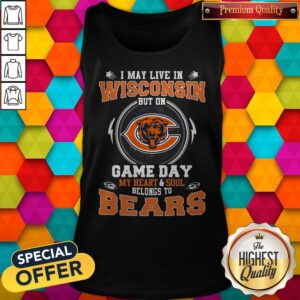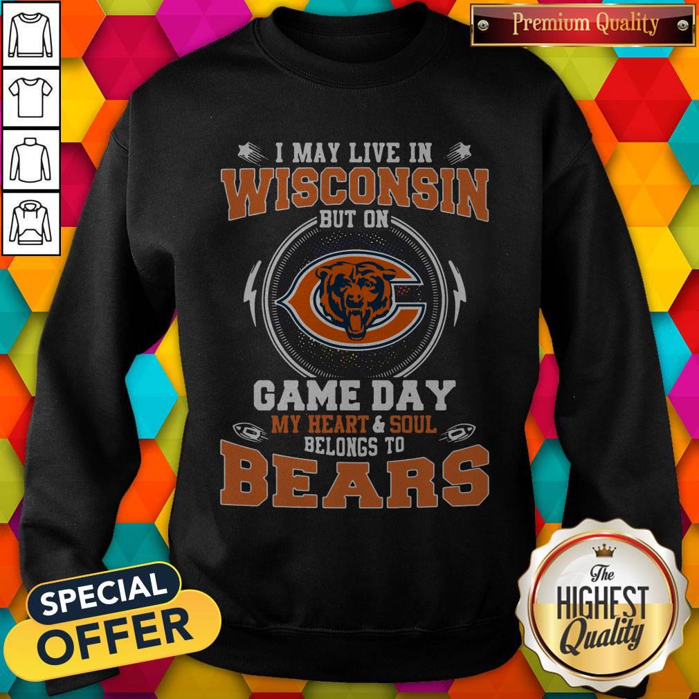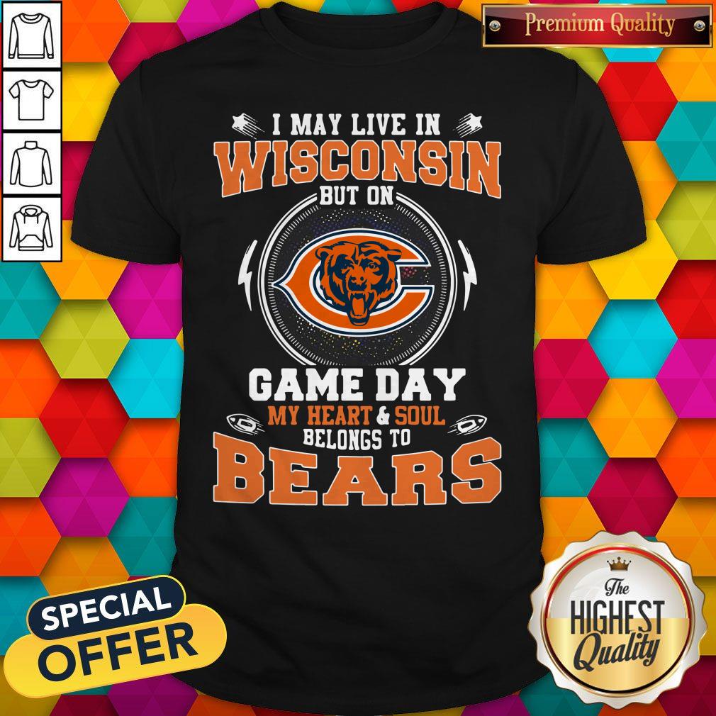 I May Live In Wisconsin But On Game Day My Heart And Soul Belong To Bears Shirt