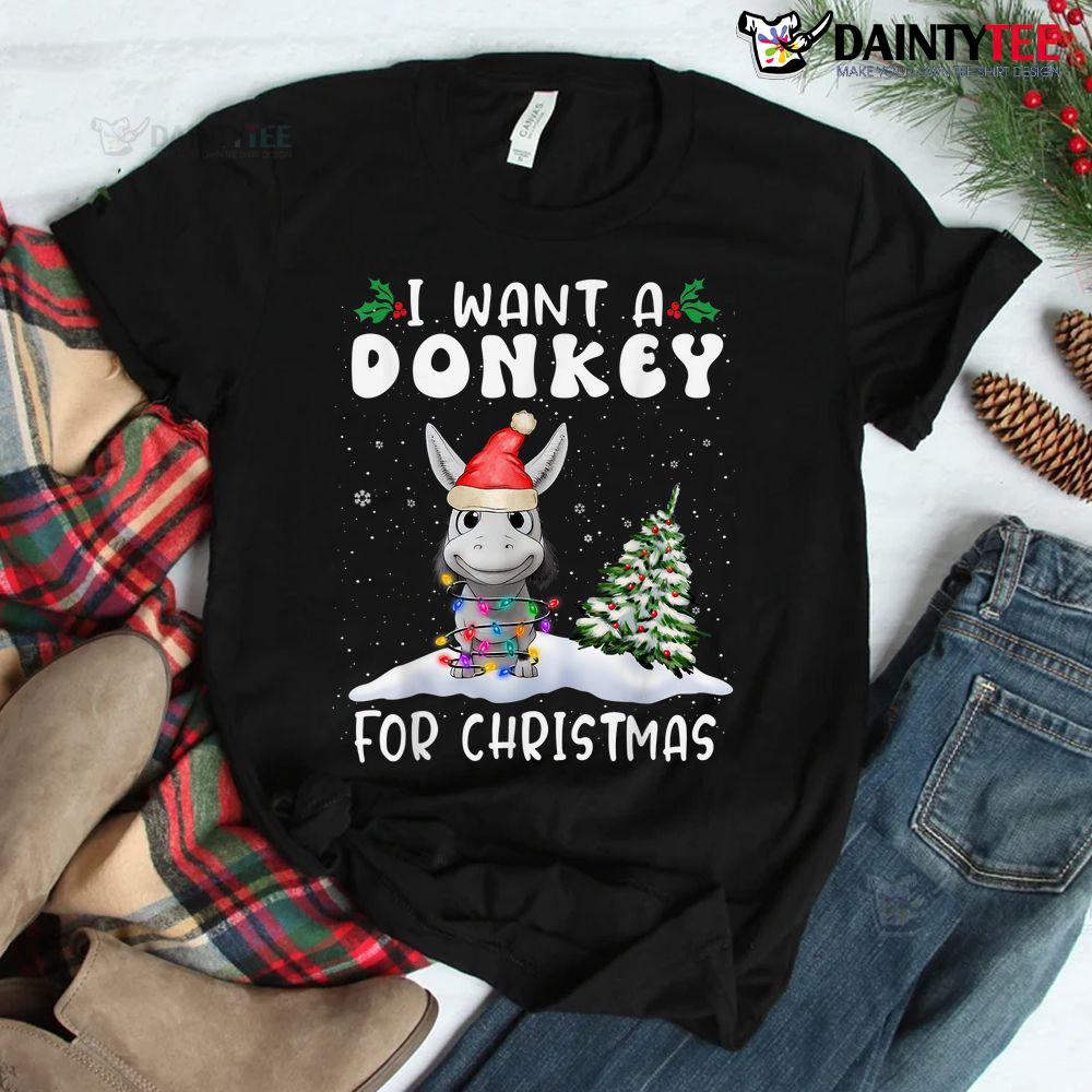 I Want A Donkey For Christmas Santa Hat Shirt
