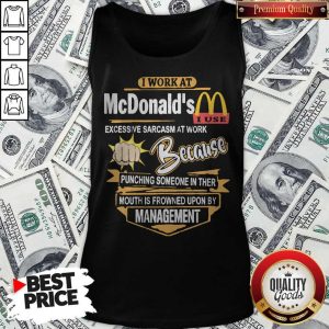 I Work At Mcdonald’s Excessive Sarcasm At Work Because Pinching Someone In Ther Mouth Is Frowned Upon By Management Shirt