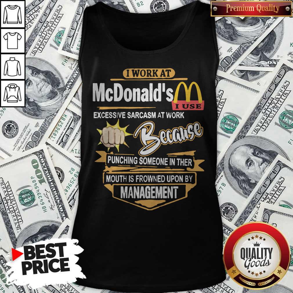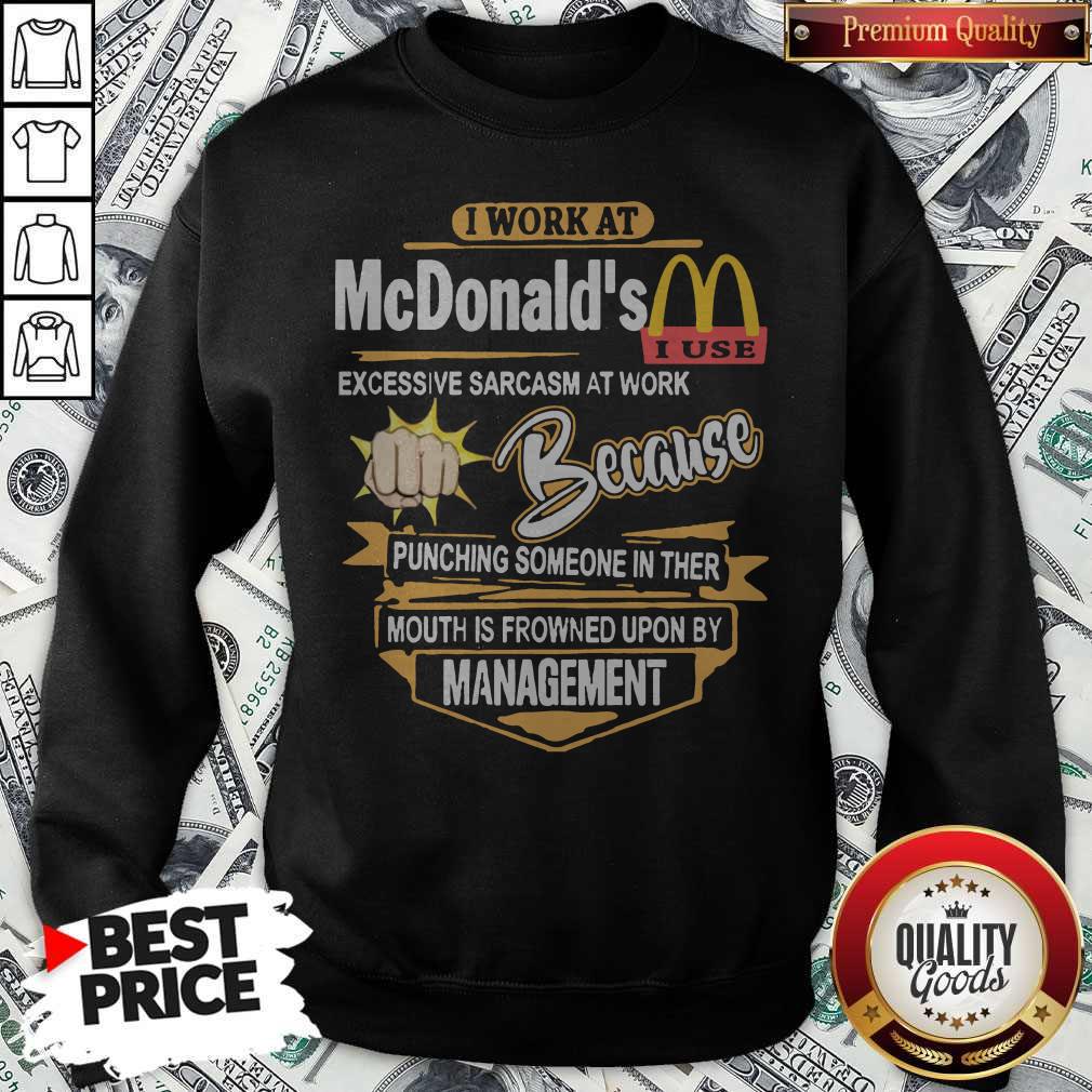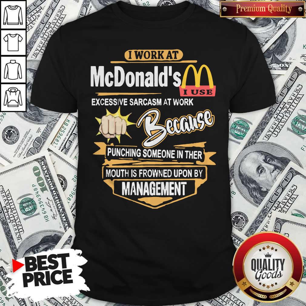 I Work At Mcdonald’s Excessive Sarcasm At Work Because Pinching Someone In Ther Mouth Is Frowned Upon By Management Shirt