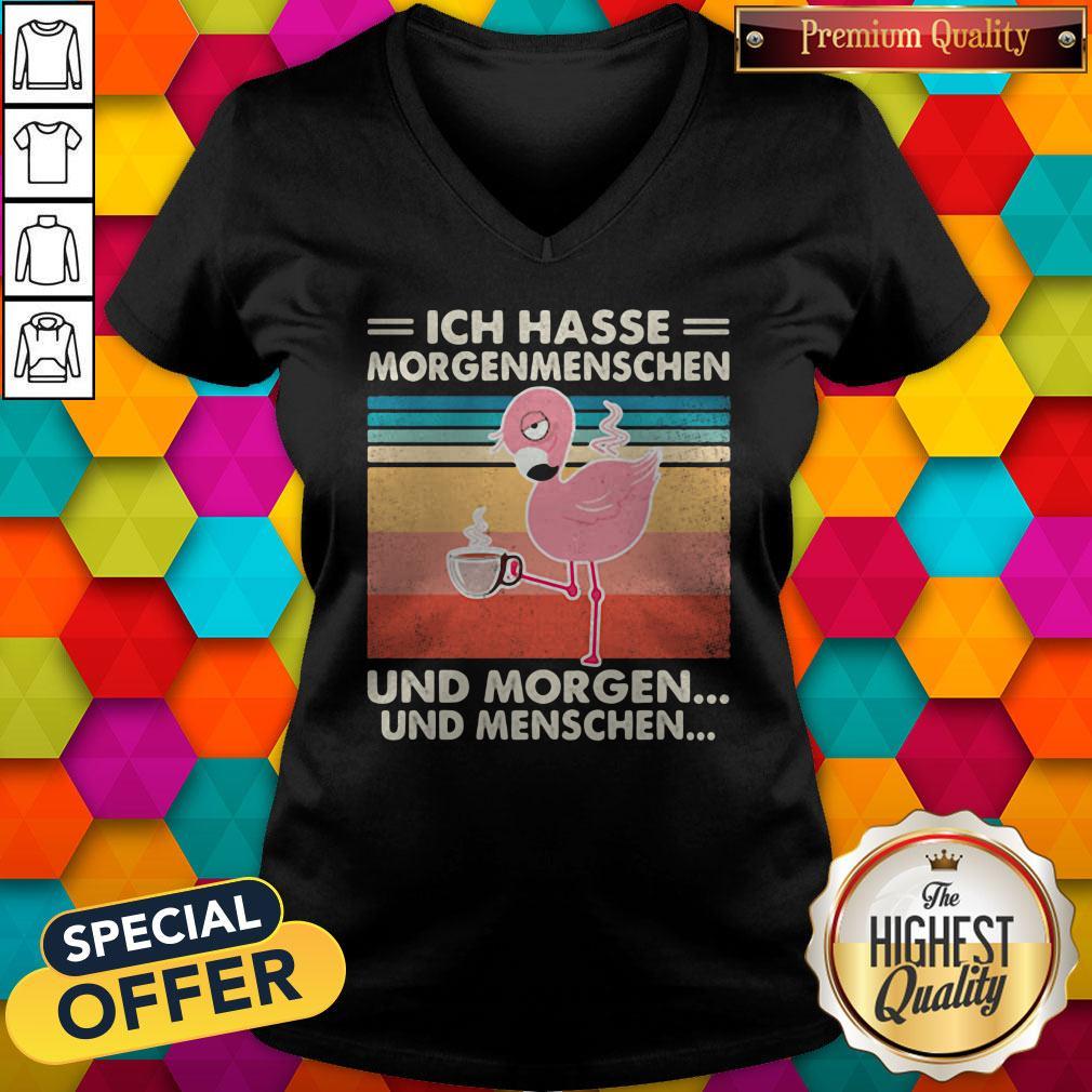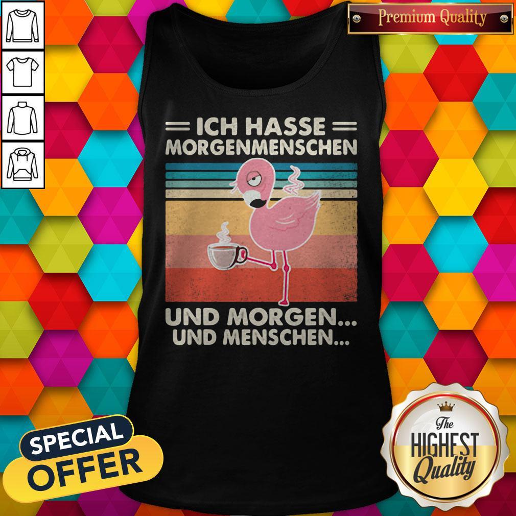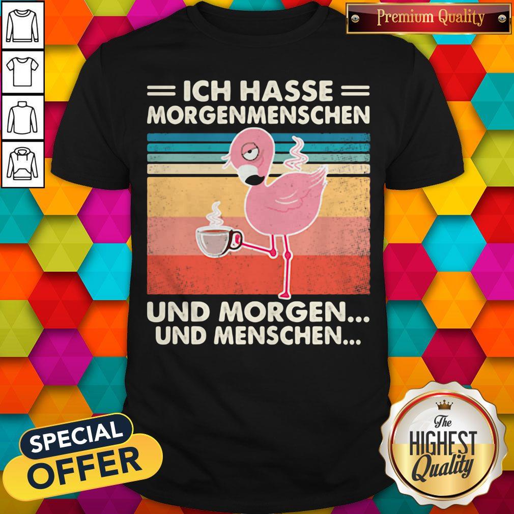 Ich Hasse Morgenmenschen Und Morgen Und Menschen Flamingo Vintage Retro Shirt