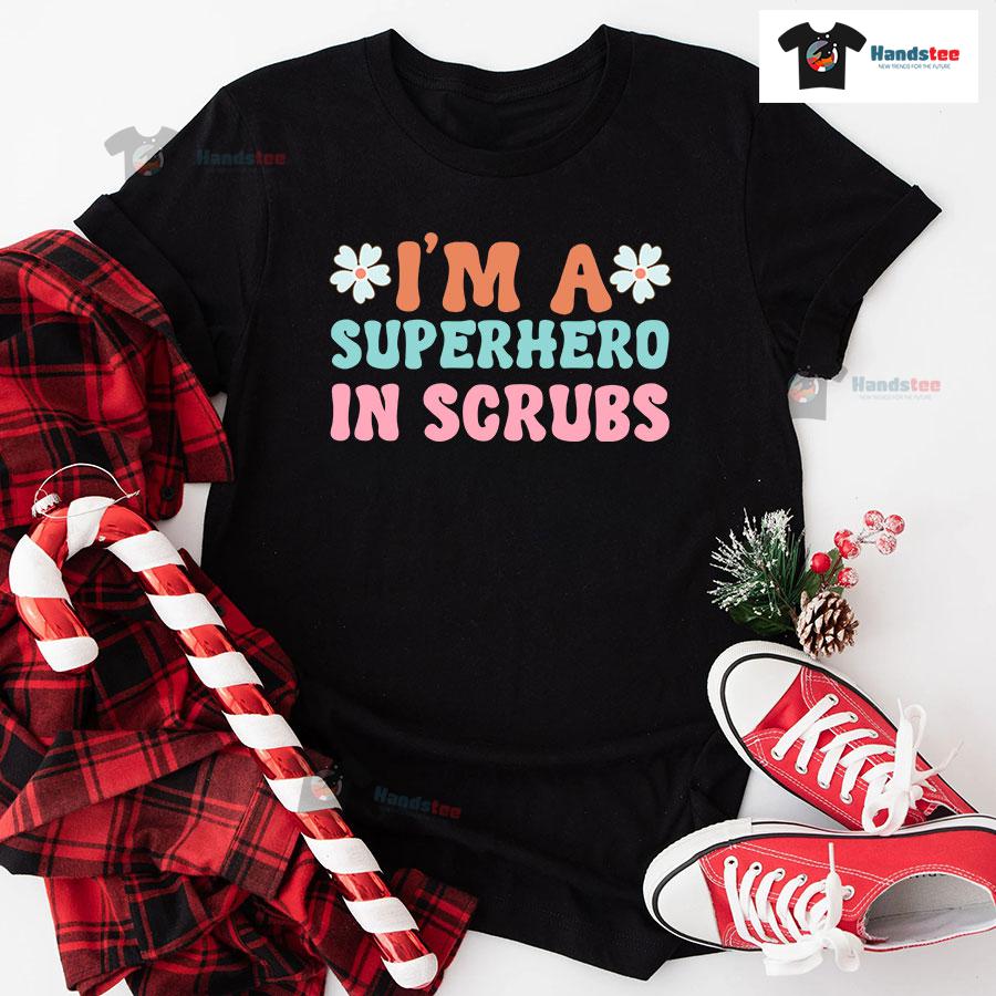 I’m A Superhero In Scrubs Nurse Flowers T-Shirt