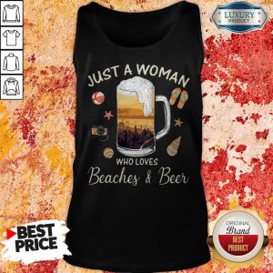Just A Woman Who Loves Beaches Beer Ball Camera Snails Clam Starfish Sandals shirt