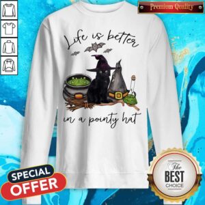 Life Is Better In A Pointy Hat Cat Witch Halloween Shirt