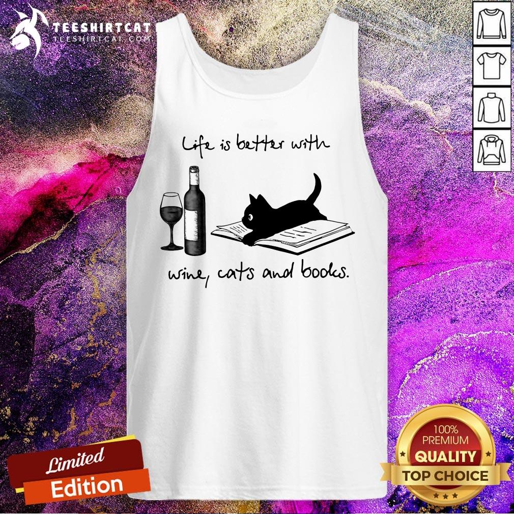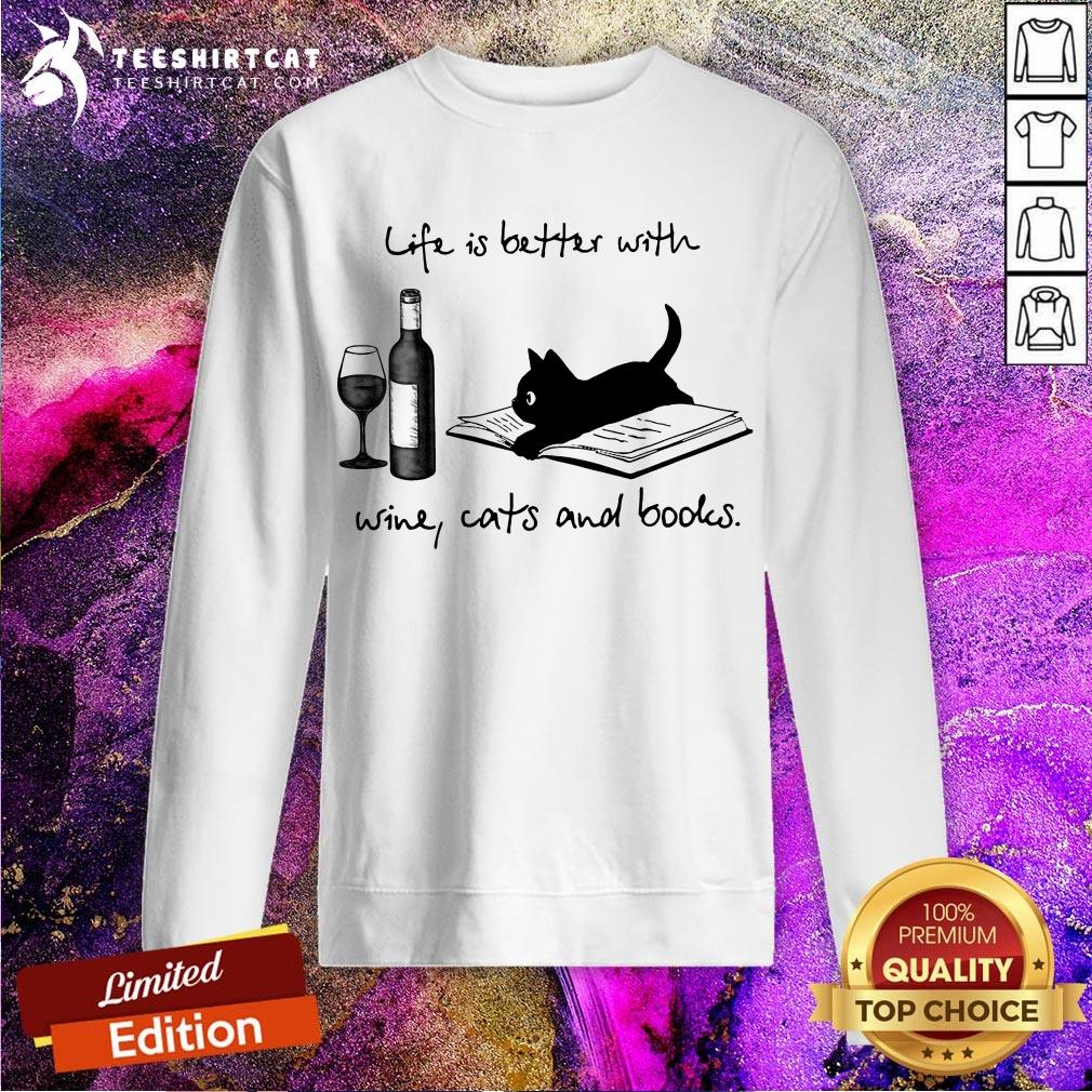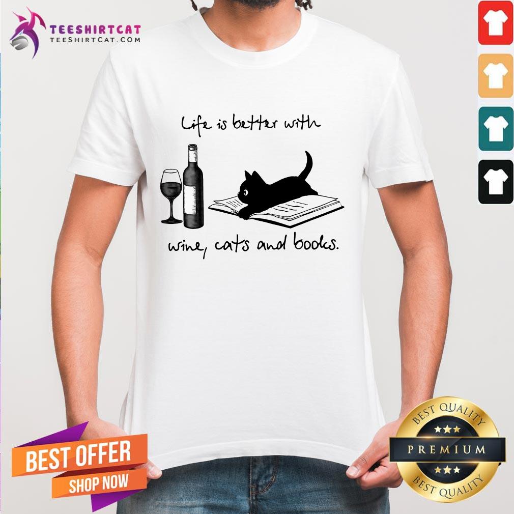 Life Is Better With Wine Cats And Books Shirt
